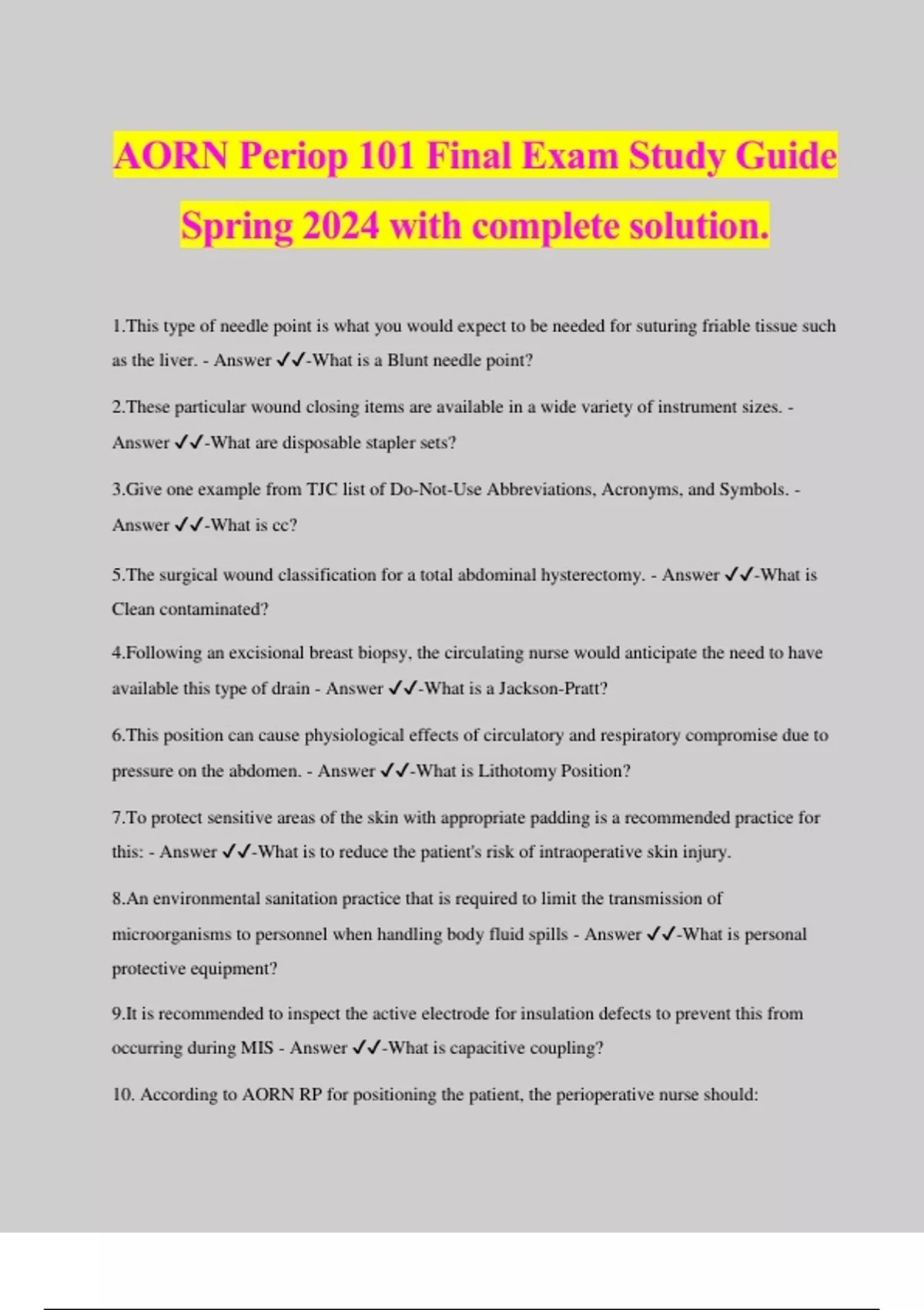 AORN Periop 101 Final Exam Study Guide Spring 2024 with complete solution.