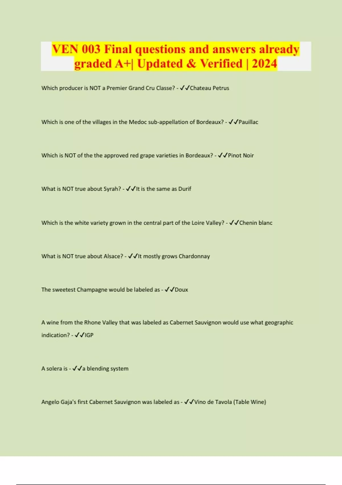 VEN 003 Final questions and answers already graded A+| Updated & Verified | 2024