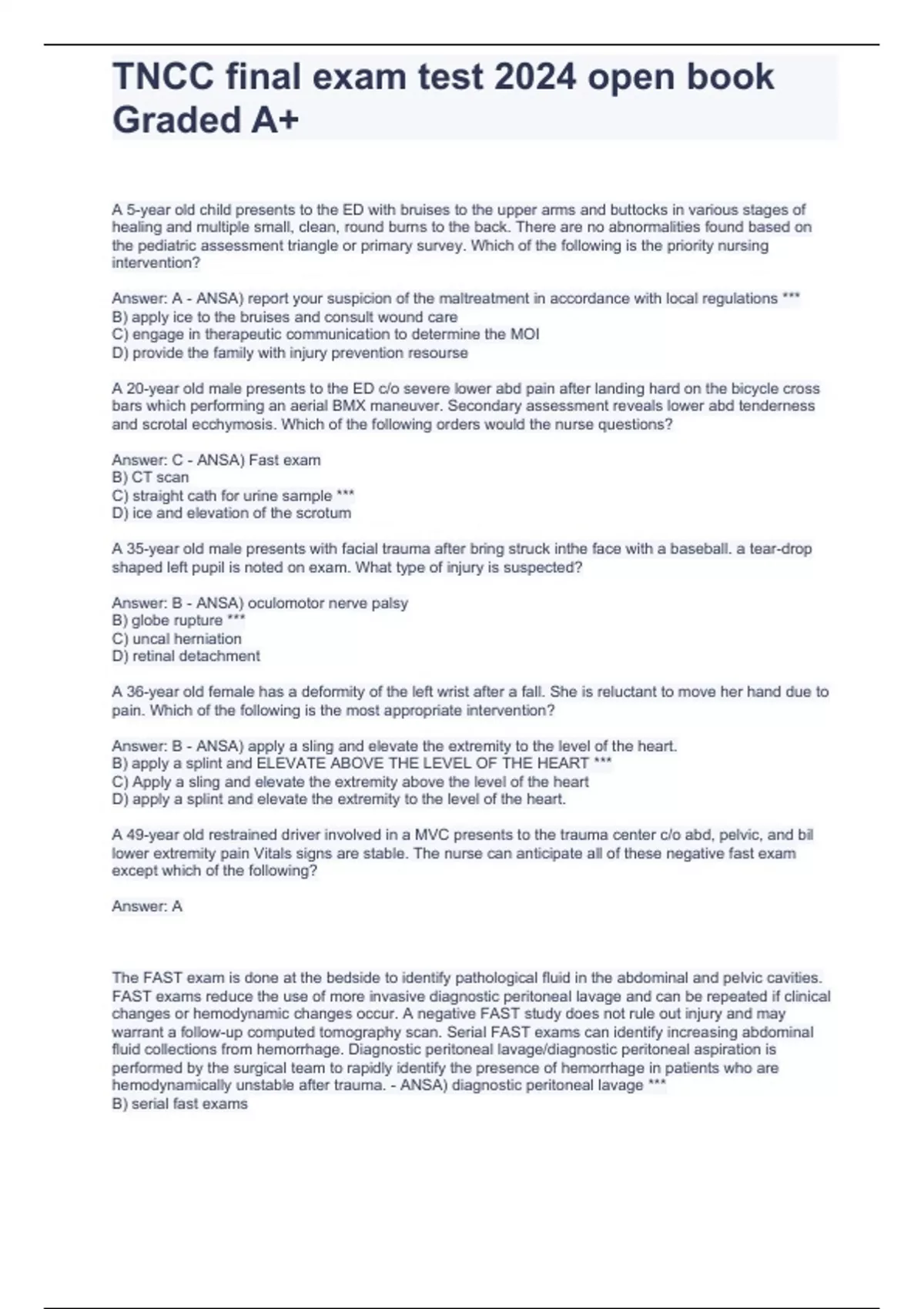 TNCC final exam test 2024 open book Graded A+