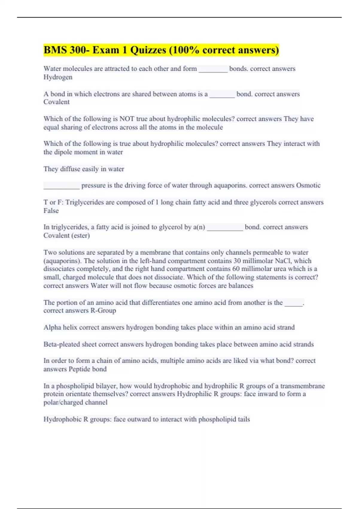 BMS 300- Exam 1 Quizzes (100% correct answers)