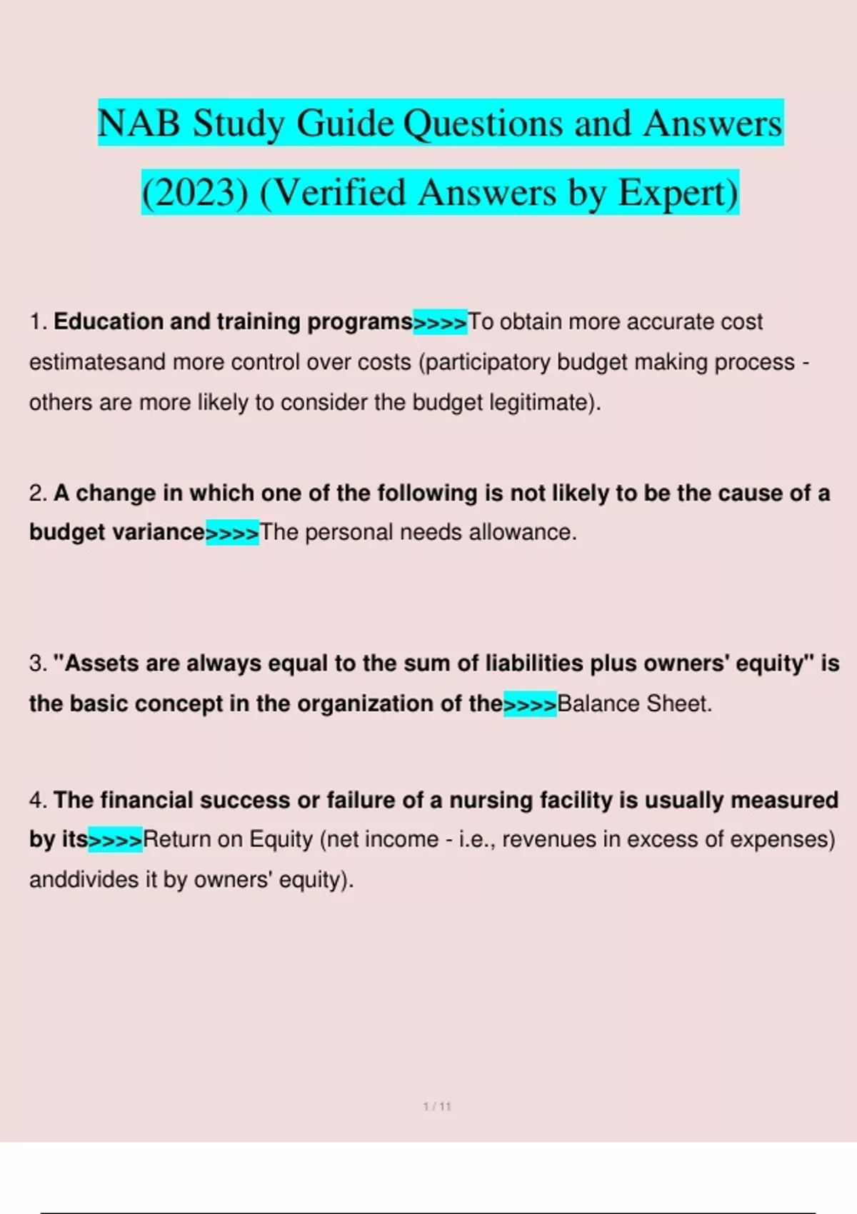 NAB Study Guide Questions and Answers (2023) (Verified Answers by Expert)