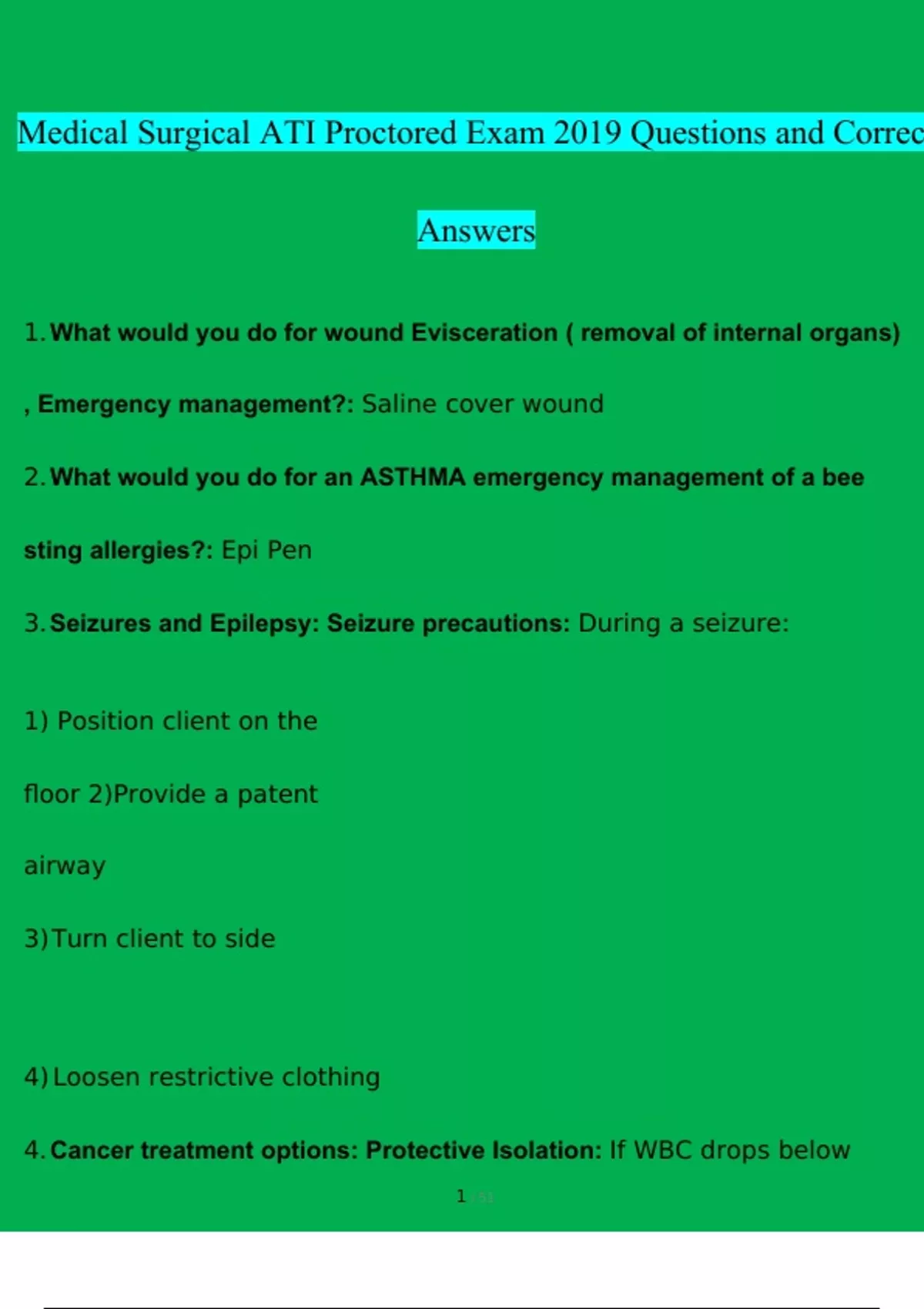 Medical surgical ATI proctored exam 2019 questions and complete answers