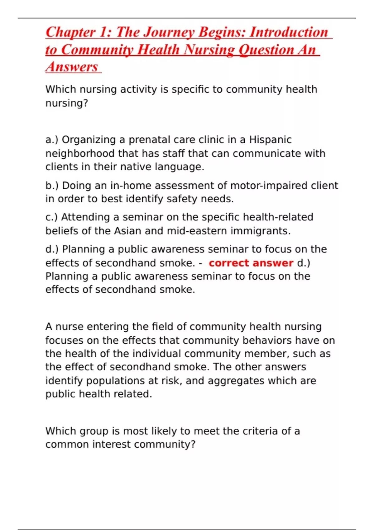Chapter 1: The Journey Begins: Introduction to Community Health Nursing Question An Answers