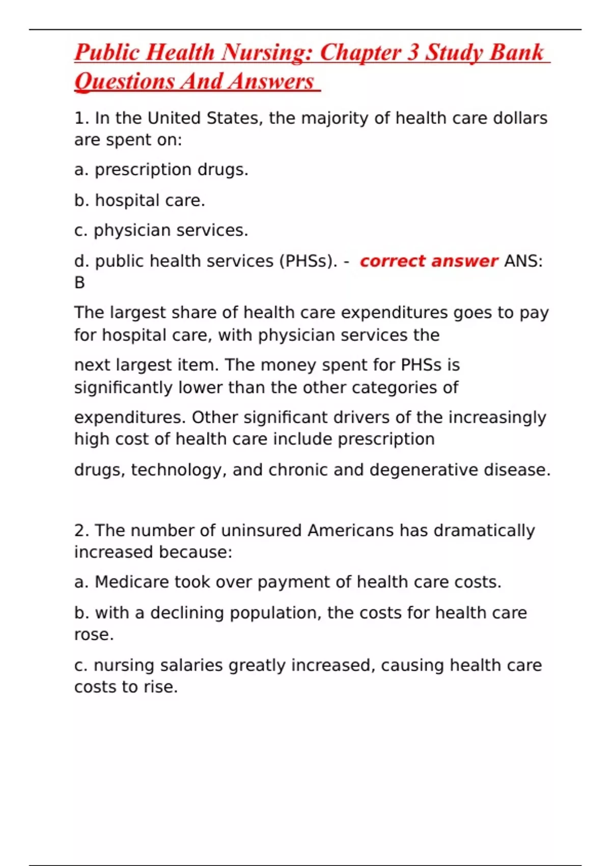 Public Health Nursing: Chapter 3 Study Bank Questions And Answers