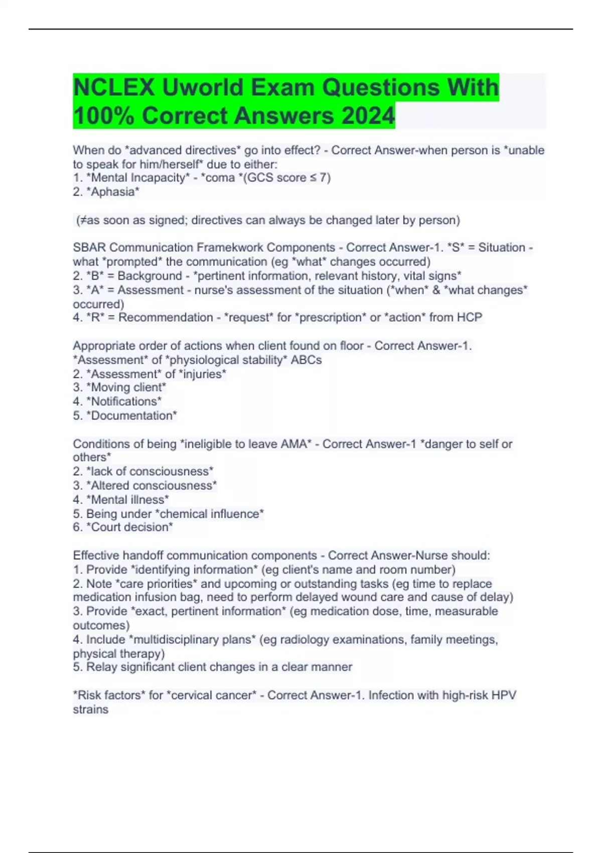 - NCLEX Uworld