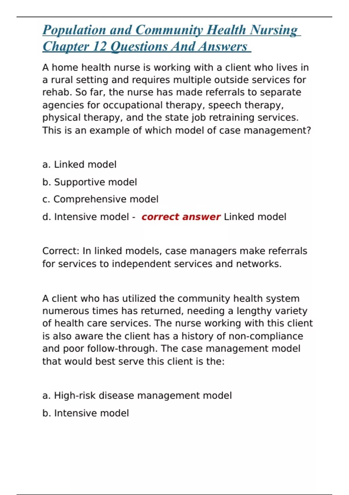 Population and Community Health Nursing Chapter 12 Questions And Answers