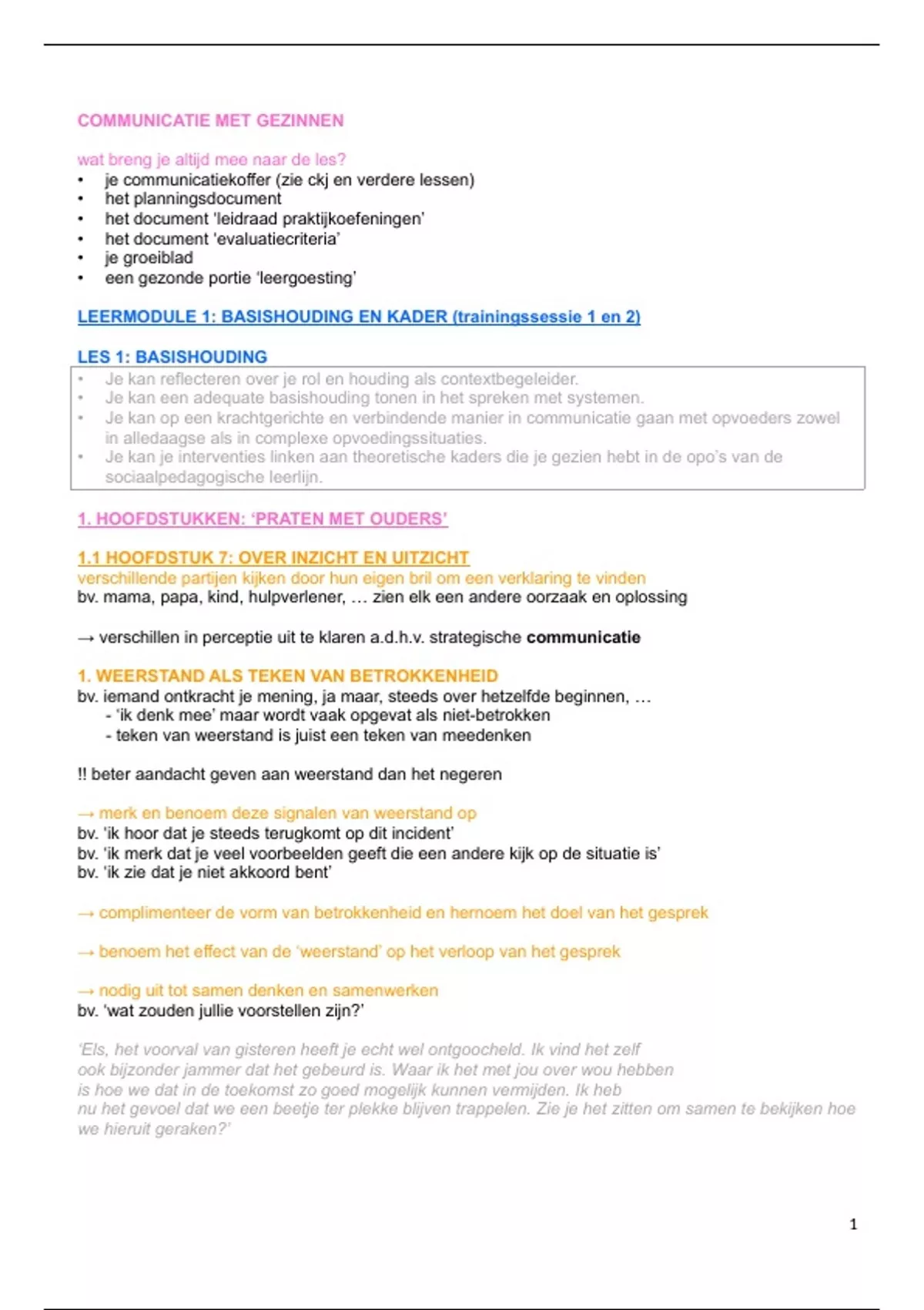 1. HOOFDSTUKKEN: ‘PRATEN MET OUDERS’