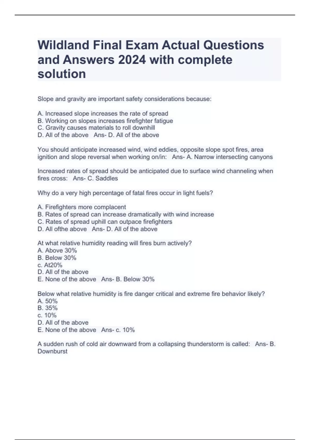 wildland final exam actual questions and answers 2
