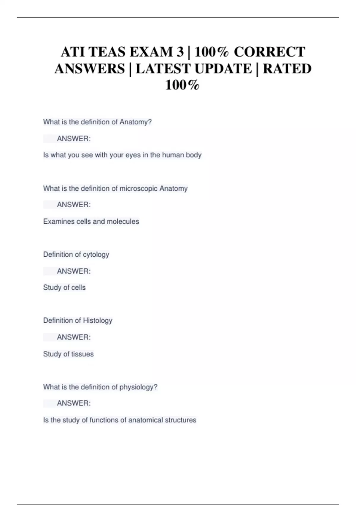 ATI TEAS EXAM 3 | 100% CORRECT ANSWERS | LATEST UPDATE | RATED 100%