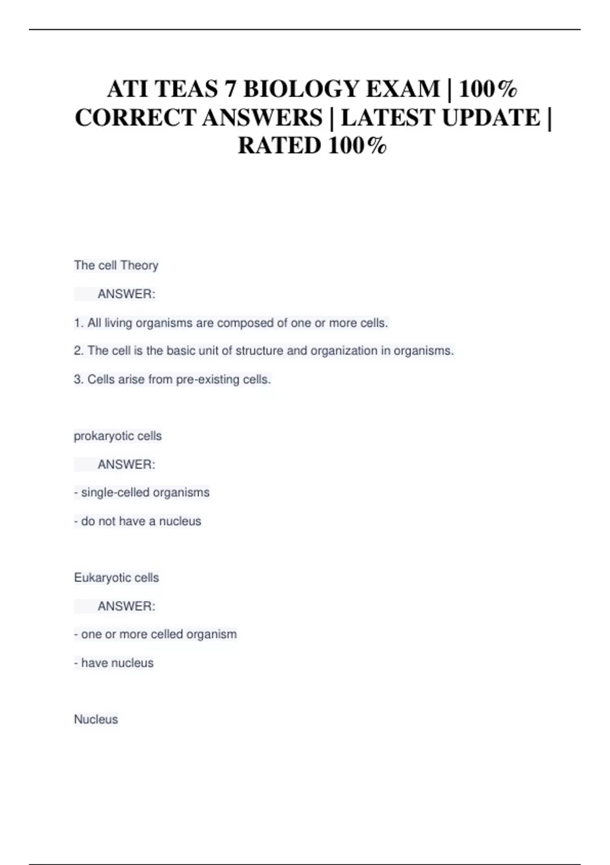 ATI TEAS 7 BIOLOGY EXAM | 100% CORRECT ANSWERS | LATEST UPDATE | RATED 100%