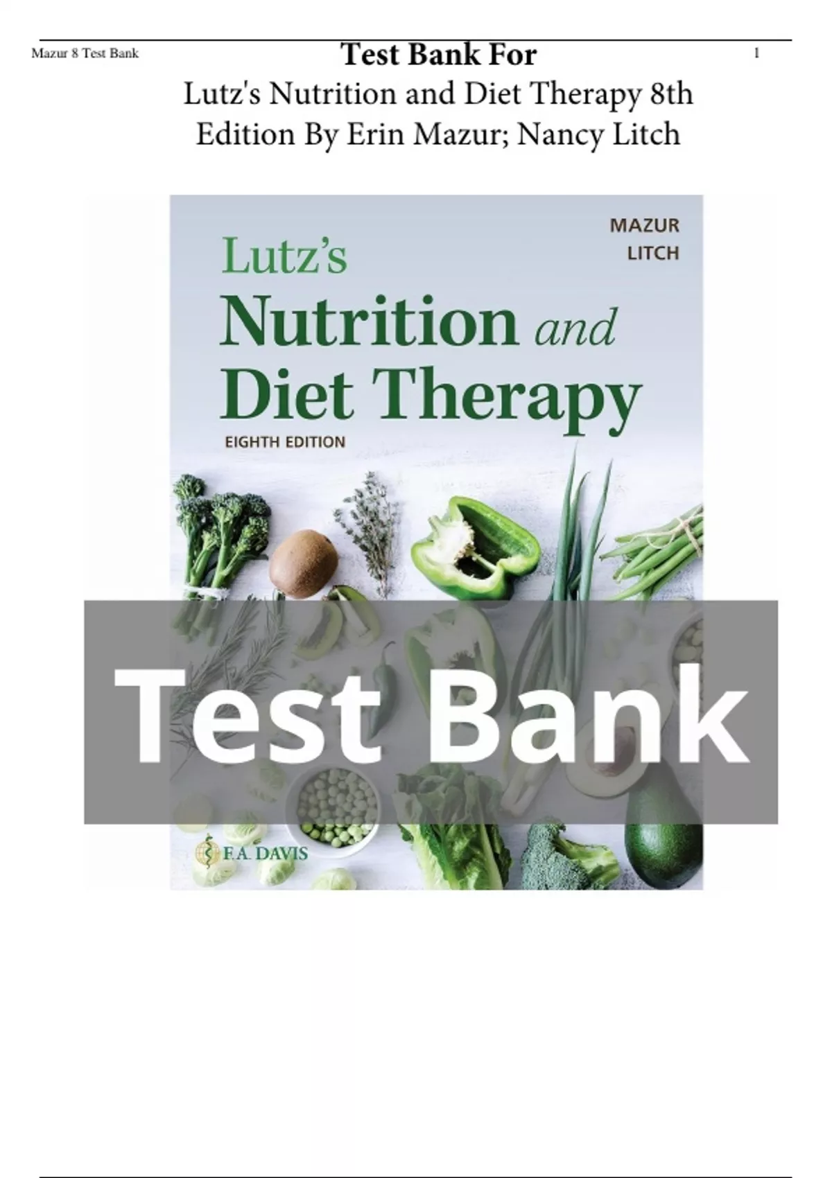 Test Bank For Lutz's Nutrition and Diet Therapy 8th Edition By Erin Mazur and Nancy Litch | Chapter 1-24 |Complete Questions and Answers A+
