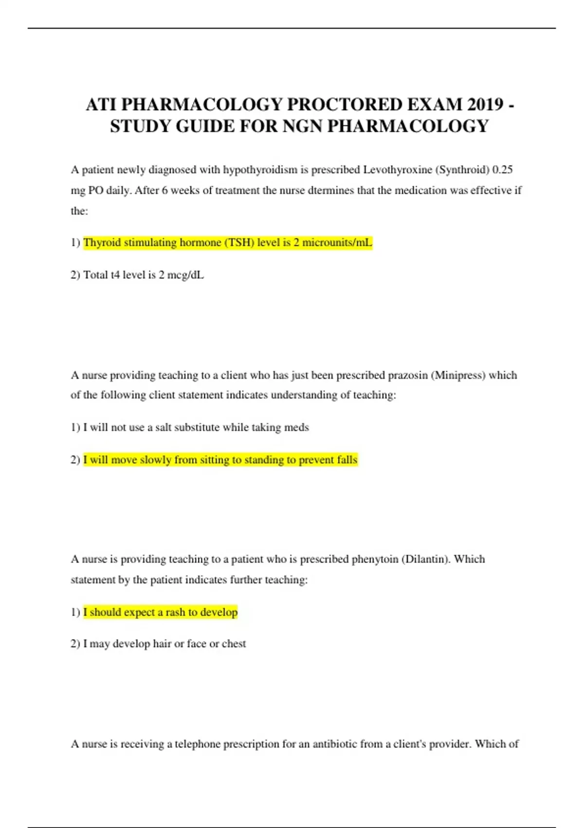 ATI PHARMACOLOGY PROCTORED EXAM 2019 - STUDY GUIDE FOR NGN PHARMACOLOGY