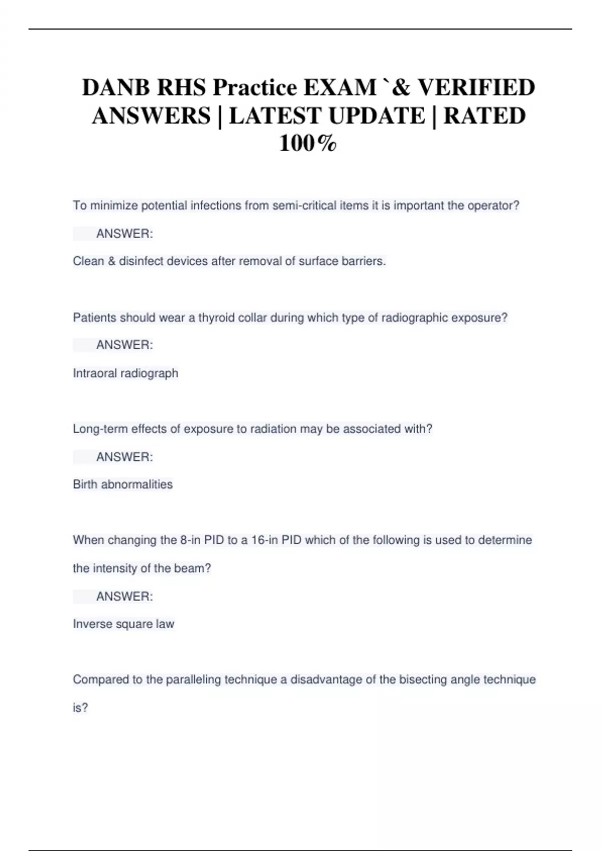 DANB RHS PRACTICE EXAM 1 `& VERIFIED ANSWERS | LATEST UPDATE | RATED 100%