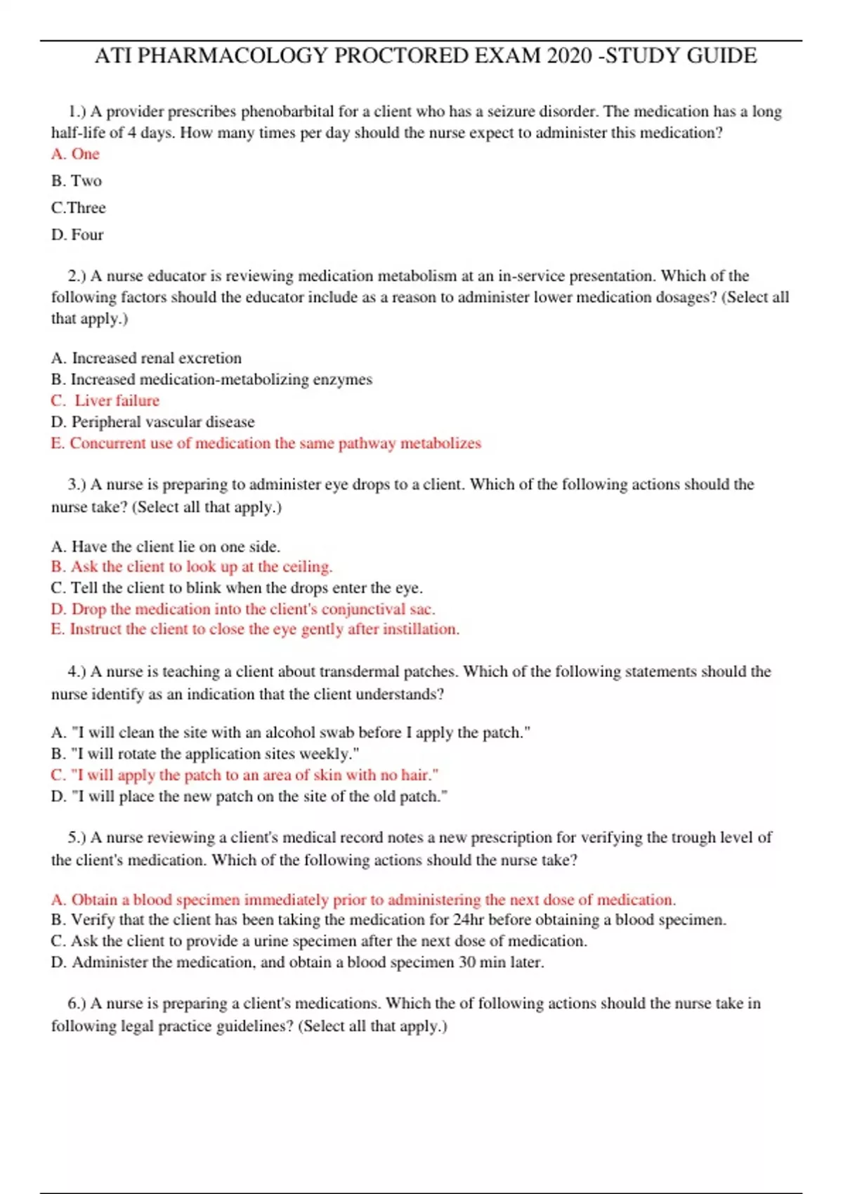 ATI PHARMACOLOGY PROCTORED EXAM 2020 -STUDY GUIDE.