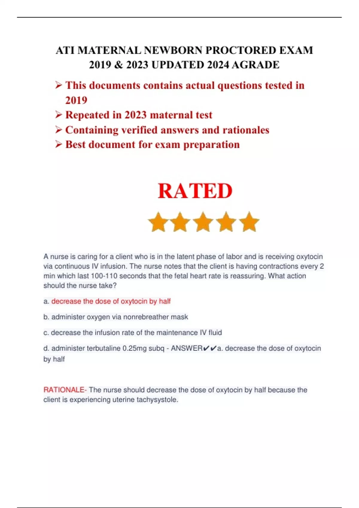 ATI MATERNAL NEWBORN PROCTORED EXAM 2019 & 2023 UPDATED 2024 AGRADE.