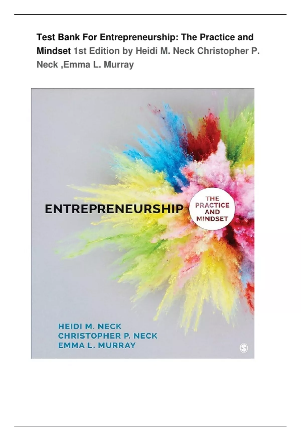 Test Bank For Entrepreneurship The Practice and Mindset 1st Edition by Heidi M. Neck Christopher P. Neck ,Emma L. Murray