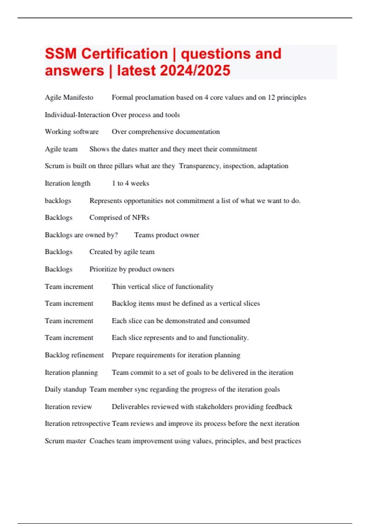 SSM Certification | questions and answers | latest 2024/2025