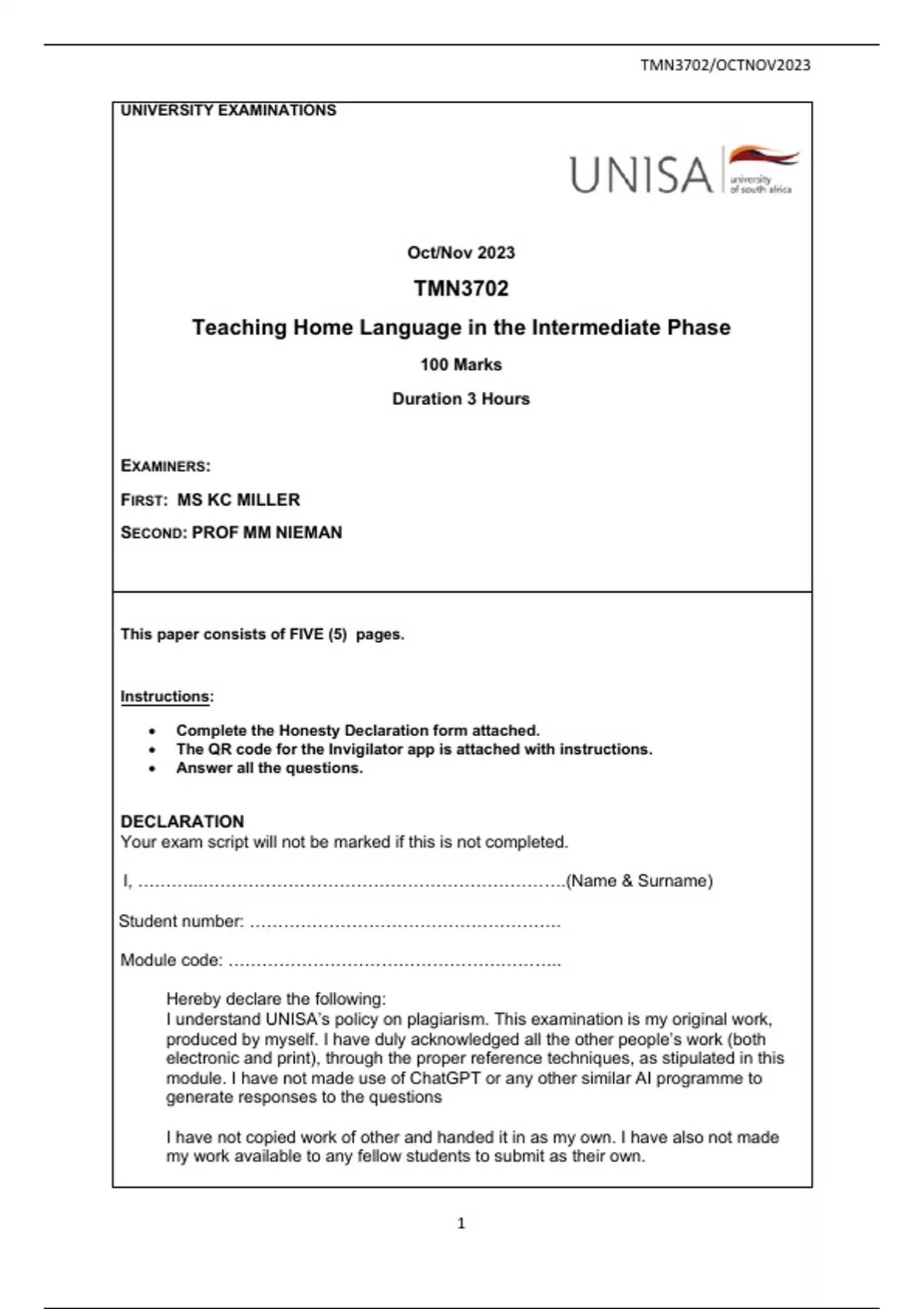 Teaching Home Language Intermediate Phase - TMN3702EXAM PACK 2023 QUESTIONS AND ANSWERS