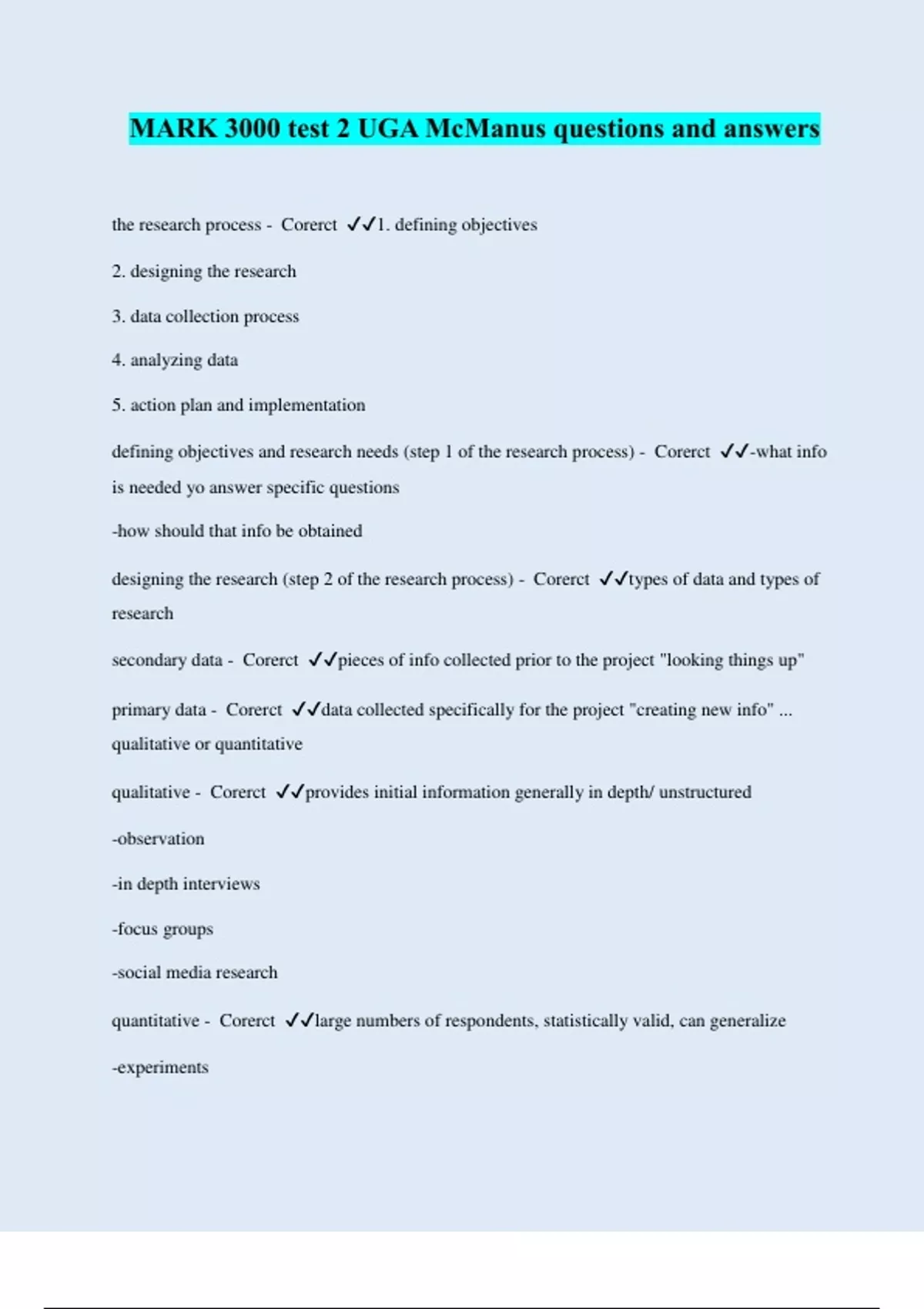 MARK 3000 test 2 UGA McManus questions and answers | 100% Pass