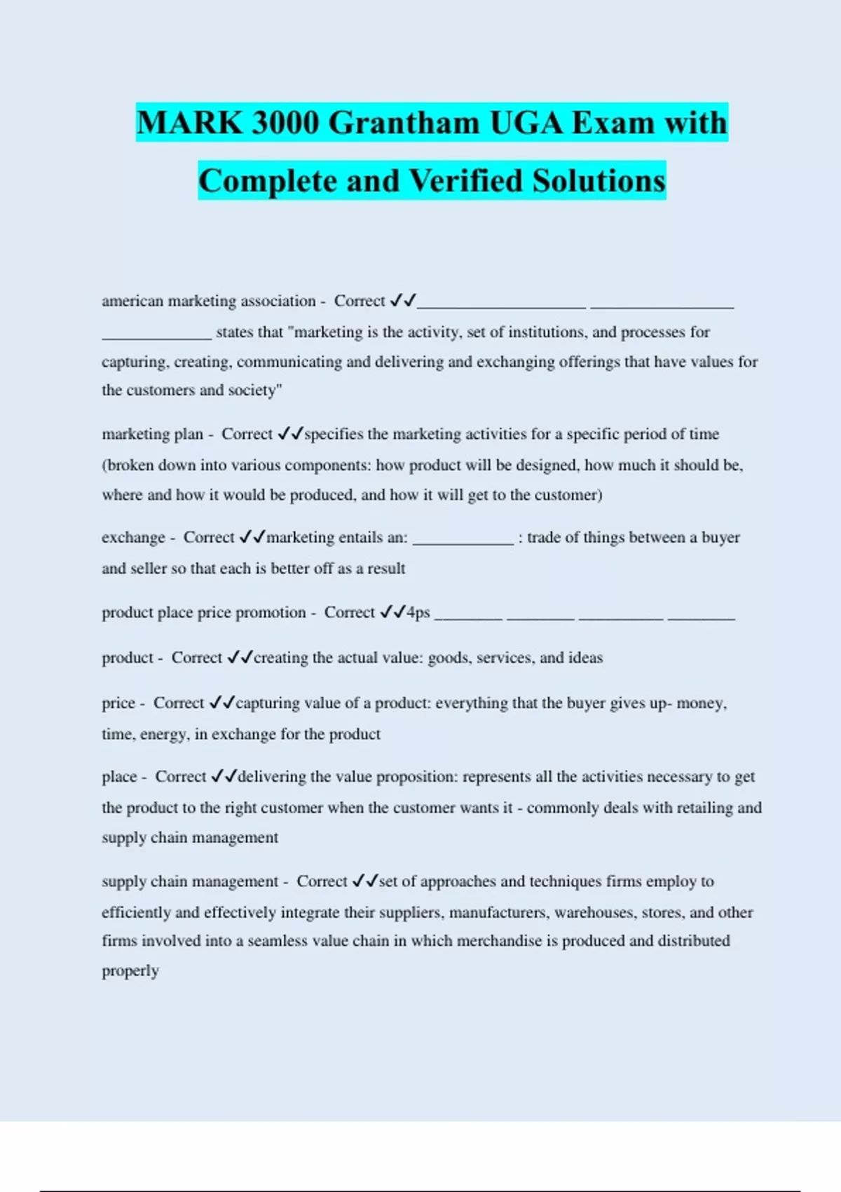 MARK 3000 Grantham UGA Exam with Complete and Verified Solutions | Rated A