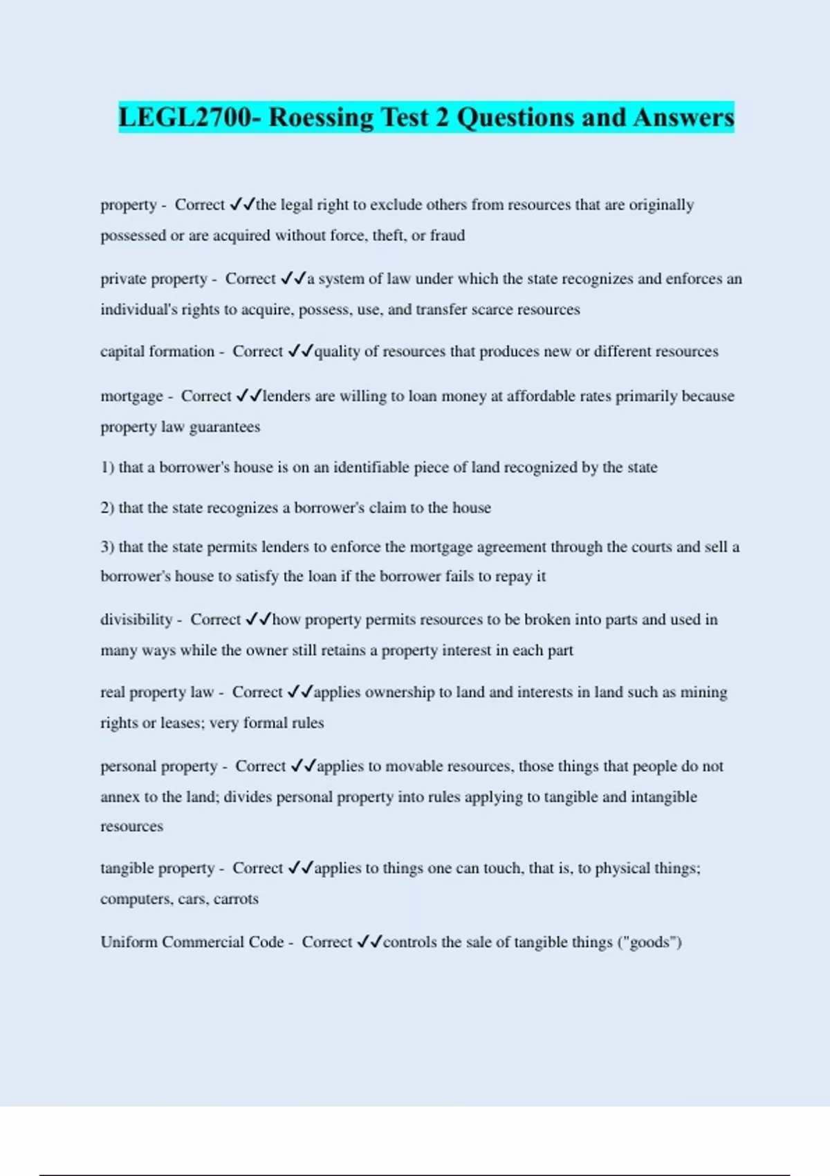 LEGL2700- Roessing Test 2 Questions and Answers | 100% Pass