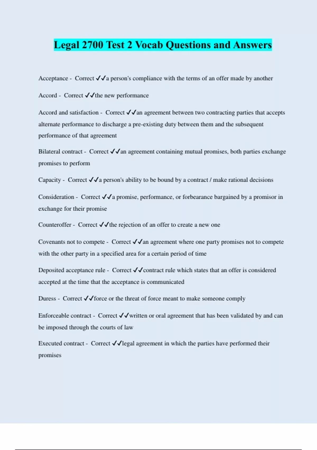 Legal 2700 Test 2 Vocab Questions and Answers | 100% Pass