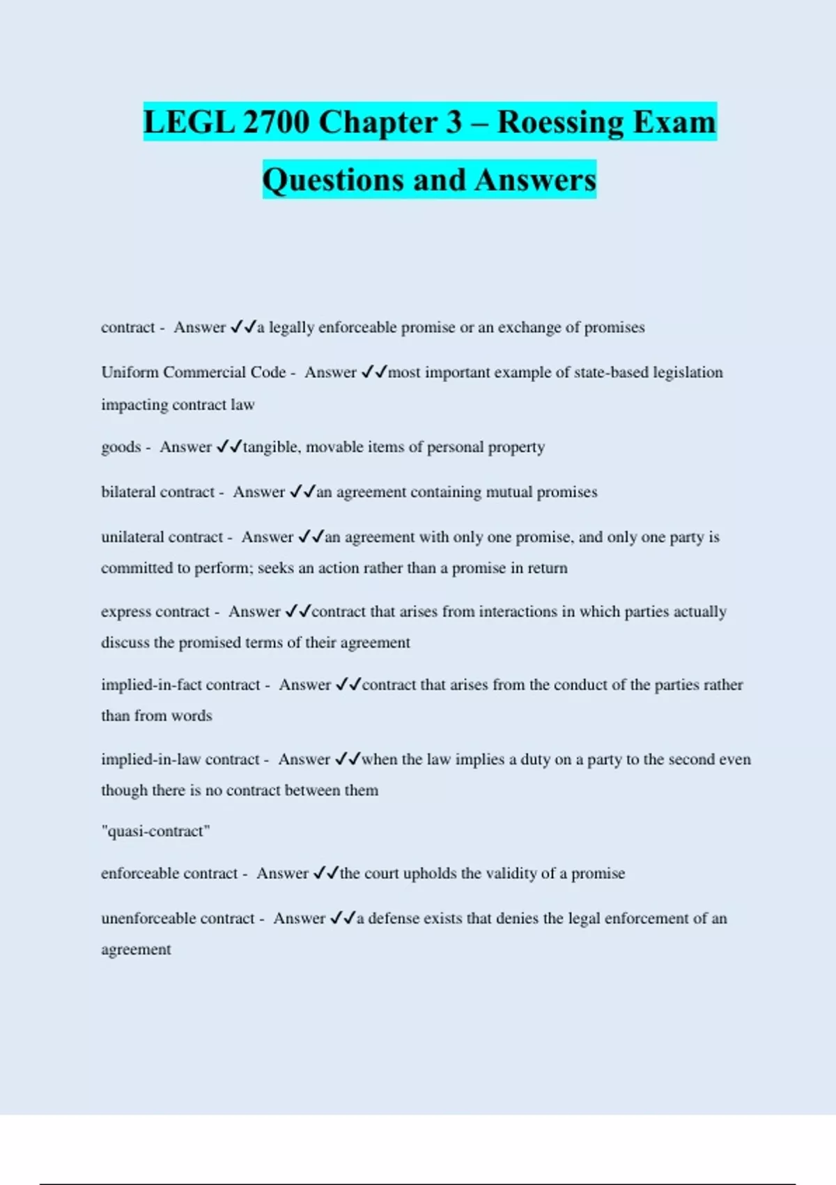 LEGL 2700 Chapter 3 – Roessing Exam Questions and Answers | 100% pass