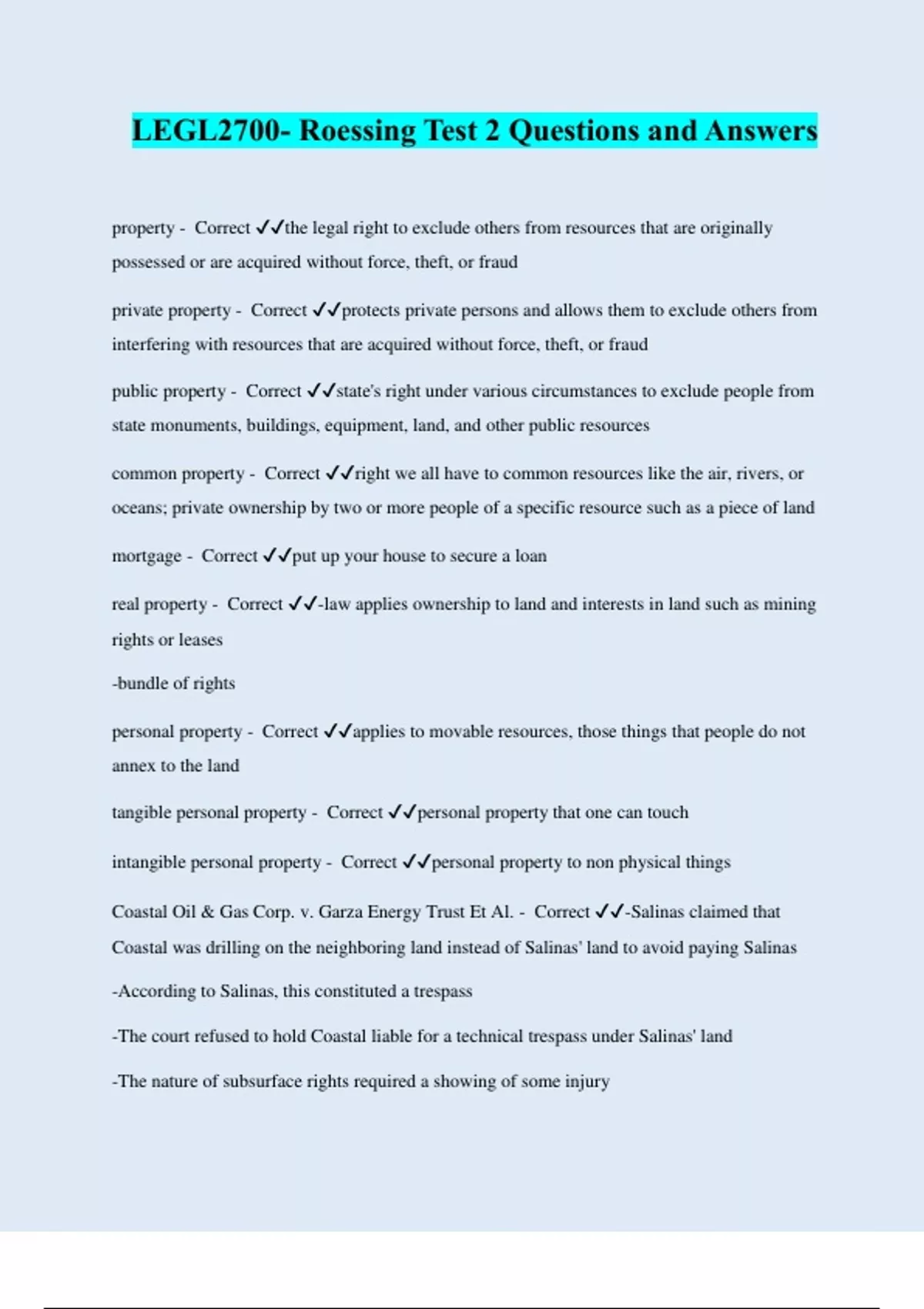 LEGL2700- Roessing Test 2 Questions and Answers | 100% pass