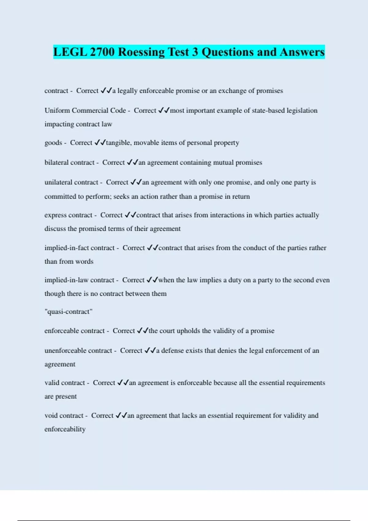 LEGL 2700 Roessing Test 3 Questions and Answers | 100% verified solutions