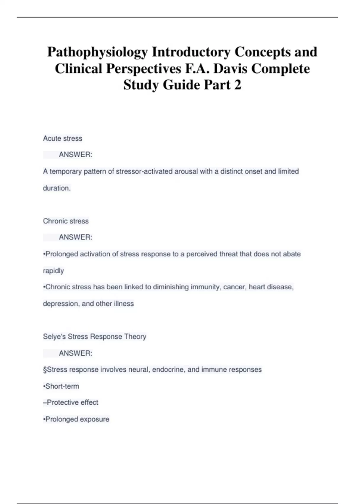 Pathophysiology Introductory Concepts and Clinical Perspectives F.A. Davis Complete Study Guide Part 2