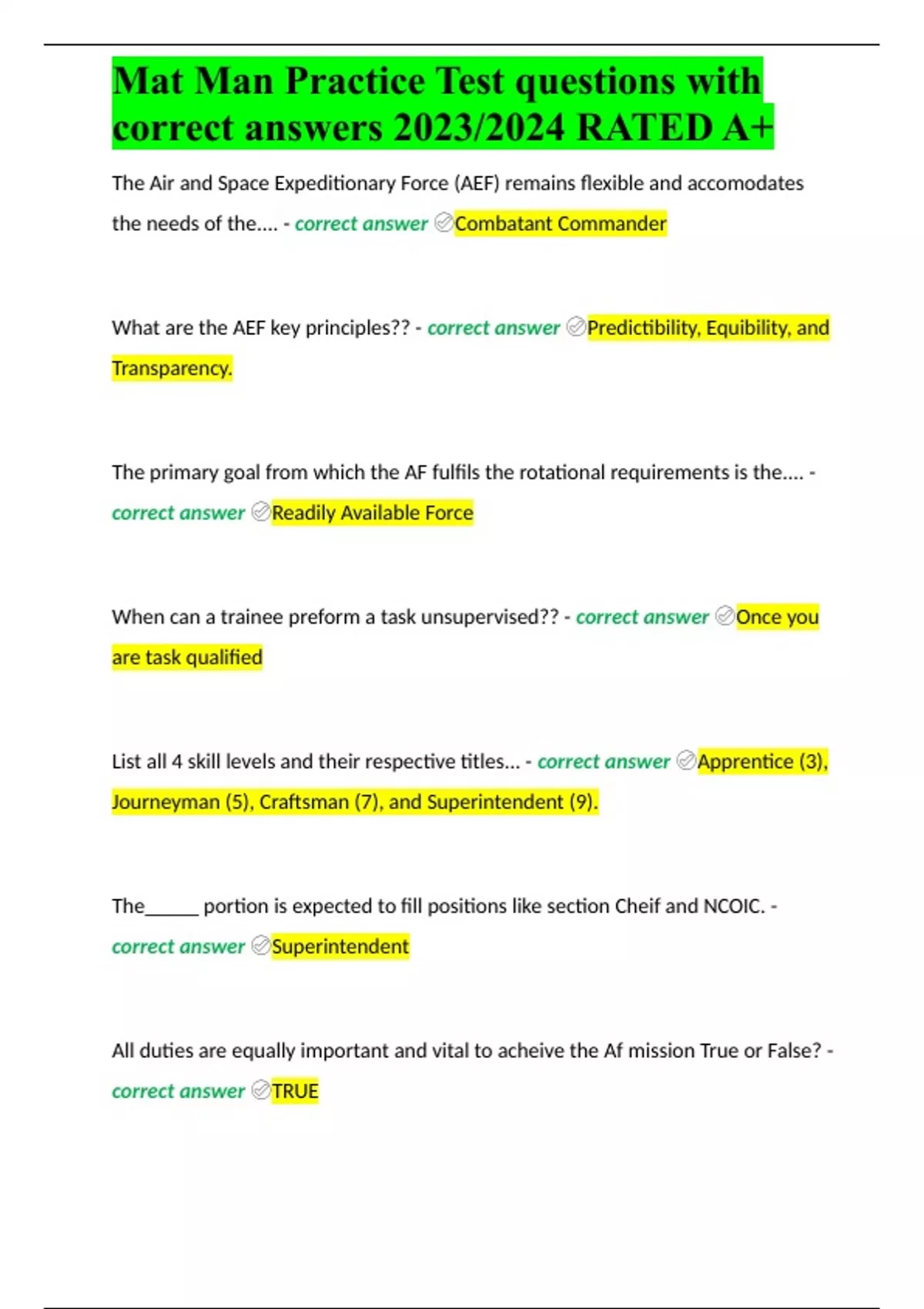 Mat Man Practice Test questions with correct answers 2023/2024 RATED A+