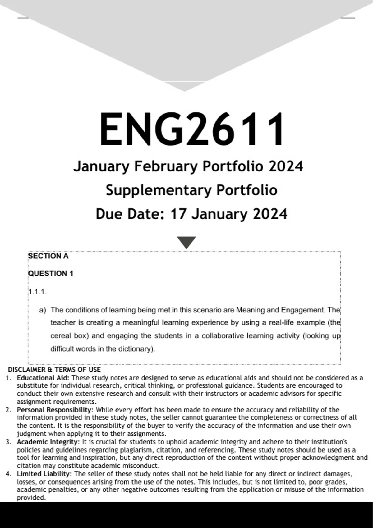 4. Limited Liability: The seller of these study notes shall not be held liable for any direct or indirect damages,