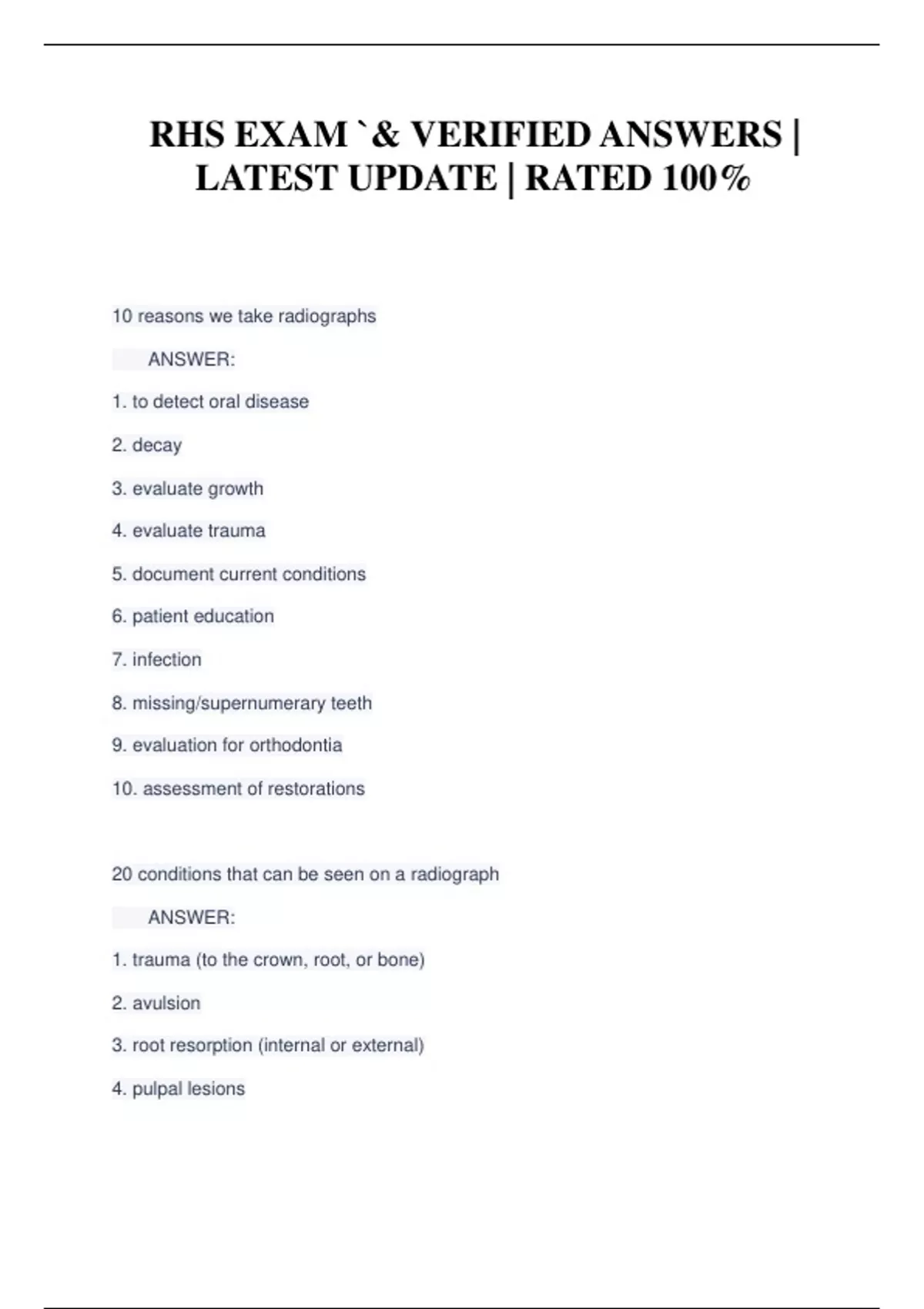 RHS EXAM `& VERIFIED ANSWERS | LATEST UPDATE | RATED 100%