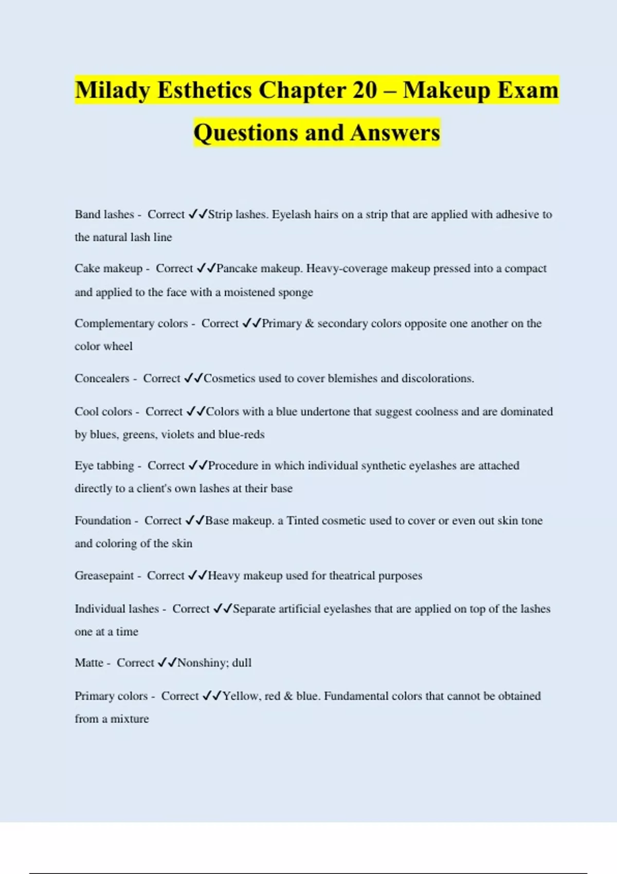 Milady Esthetics Chapter 20 – Makeup Exam Questions and Answers | Latest 2024