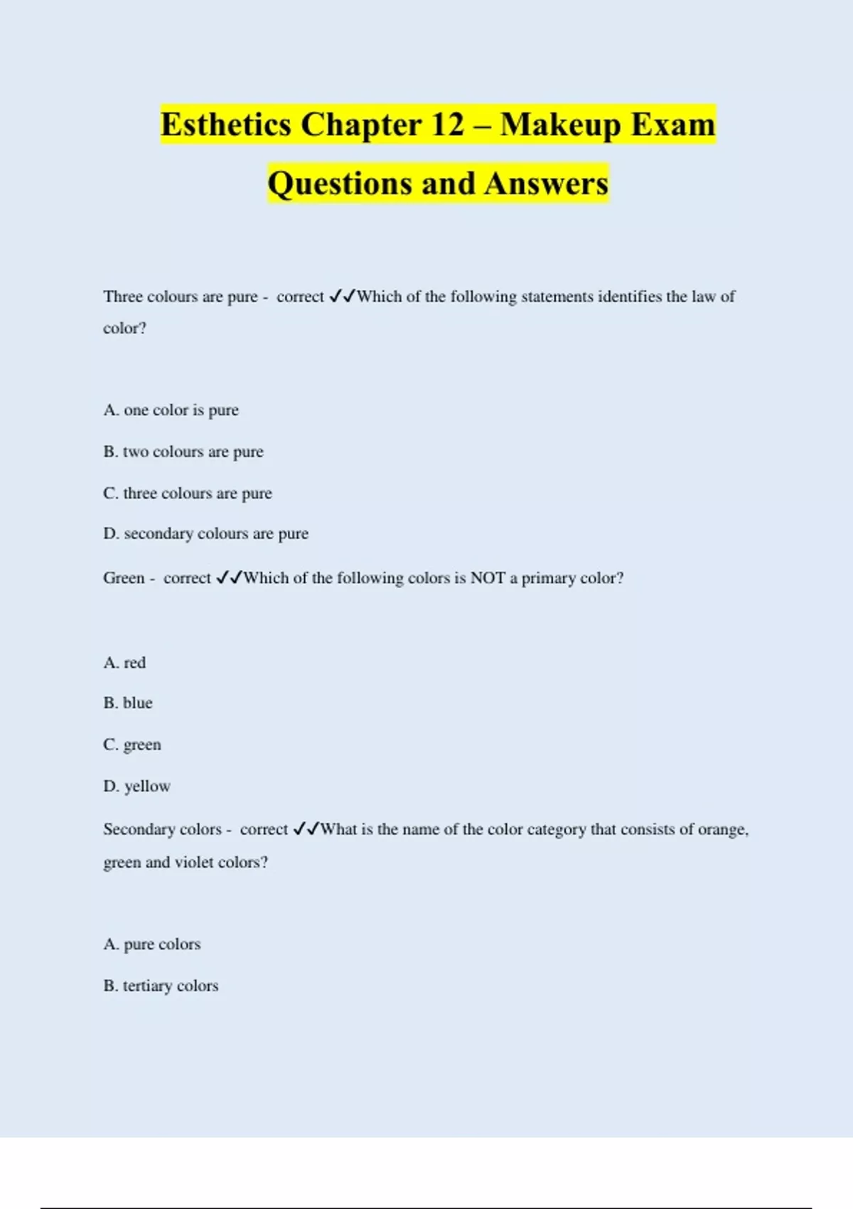 Package deal For Esthetics Exams with Complete Solution | Guaranteed Success Updated & Verified | 2024