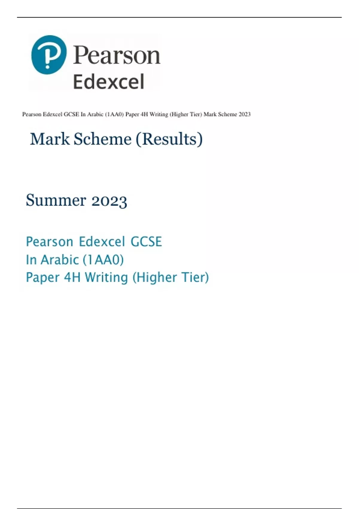 Pearson Edexcel GCSE In Arabic (1AA0) Paper 4H Writing (Higher Tier) Mark Scheme 2023
