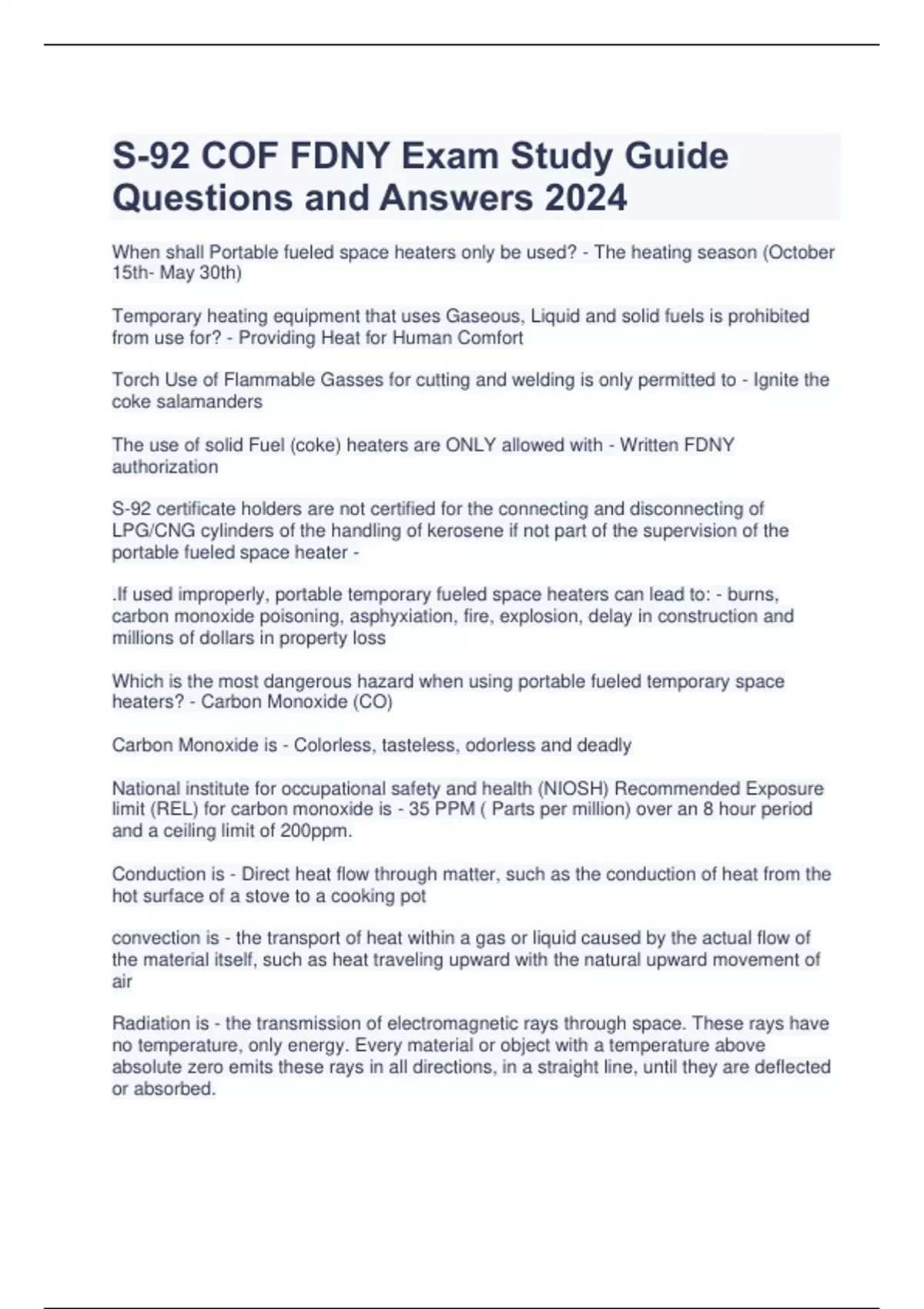 S-92 COF FDNY Exam Study Guide Questions and Answers 2024