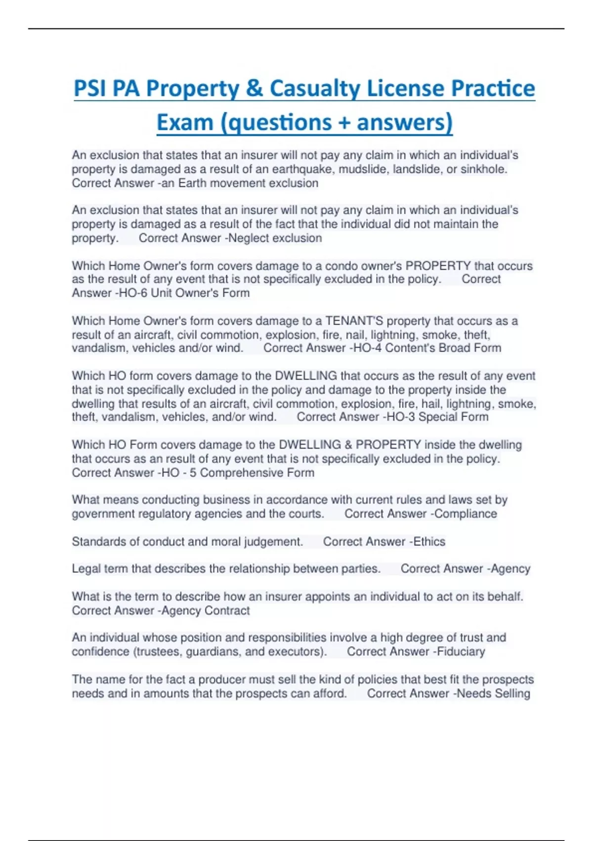 PSI PA Property & Casualty License Practice Exam (questions + answers)PSI PA Property & Casualty License Practice Exam (questions + answers)PSI PA Property & Casualty License Practice Exam (questions + answers)PSI PA Property & Casualty License Practice Exam (questions + answers)PSI PA Property & Casualty License Practice Exam (questions + answers)PSI PA Property & Casualty License Practice Exam (questions + answers)PSI PA Property & Casualty License Practice Exam (questions + answers)PSI PA Property & Casualty License Practice Exam (questions + answers)PSI PA Property & Casualty License Practice Exam (questions + answers)PSI PA Property & Casualty License Practice Exam (questions + answers)PSI PA Property & Casualty License Practice Exam (questions + answers)PSI PA Property & Casualty License Practice Exam (questions + answers)