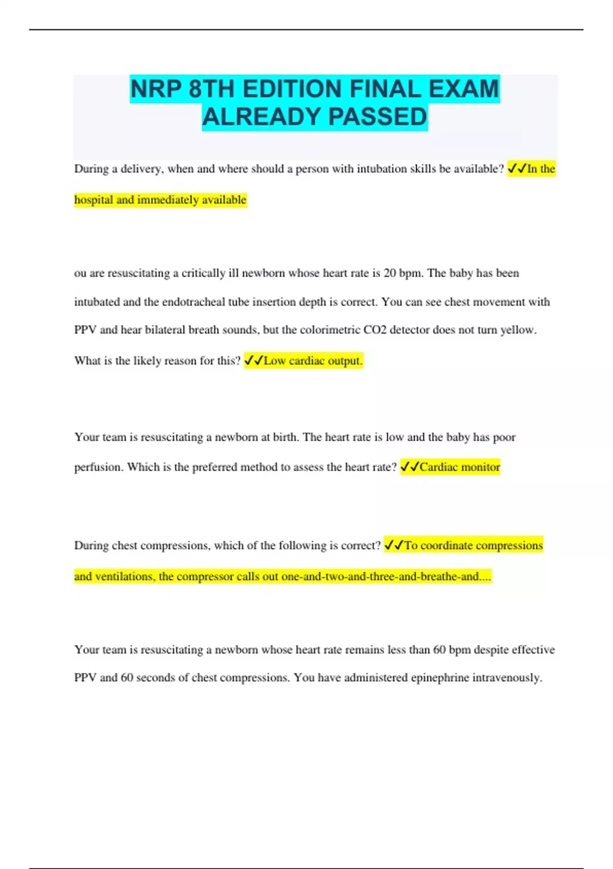NRP 8TH EDITION FINAL EXAM ALREADY PASSED