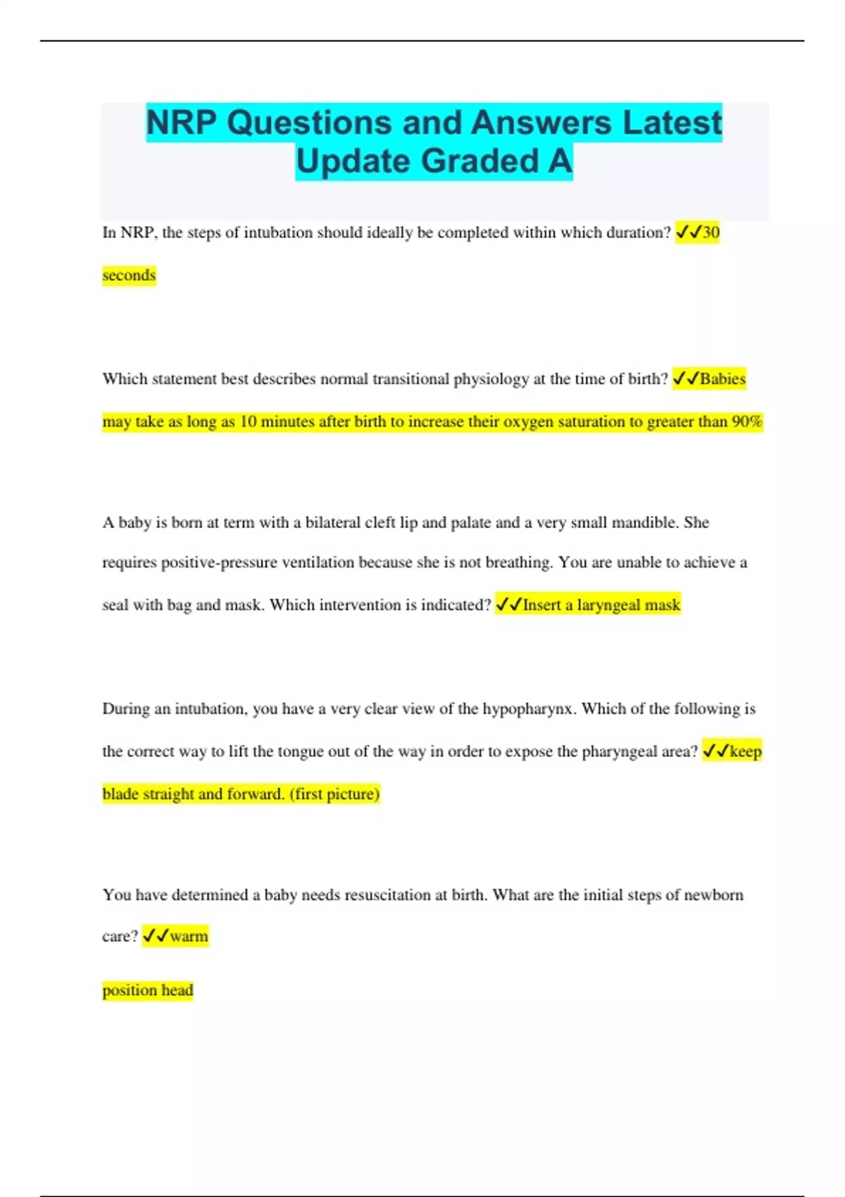 NRP Questions and Answers Latest Update Graded A