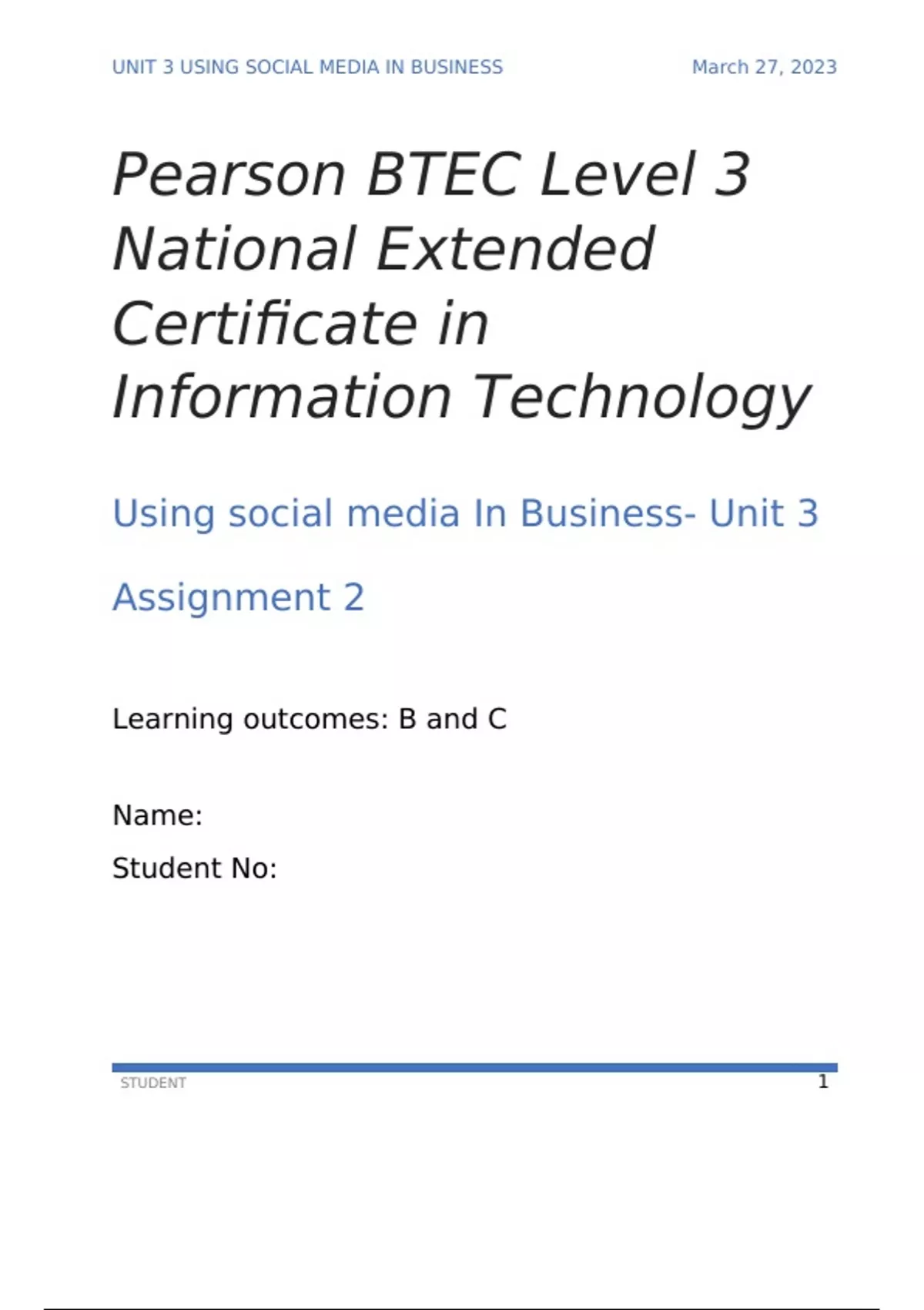 , UNIT 3 USING SOCIAL MEDIA IN BUSINESS March 27, 2023