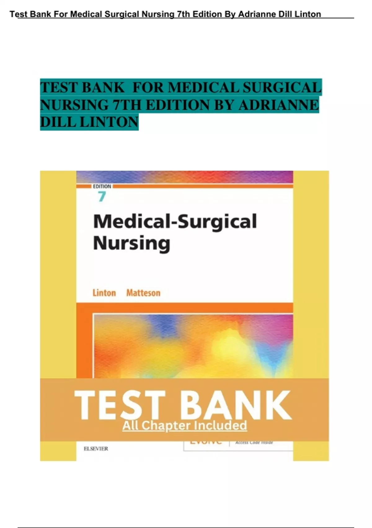 Test Bank For Medical Surgical Nursing 7th Edition By Adrianne Dill Linton: Questions & Answers: Guaranteed A+ Guide
