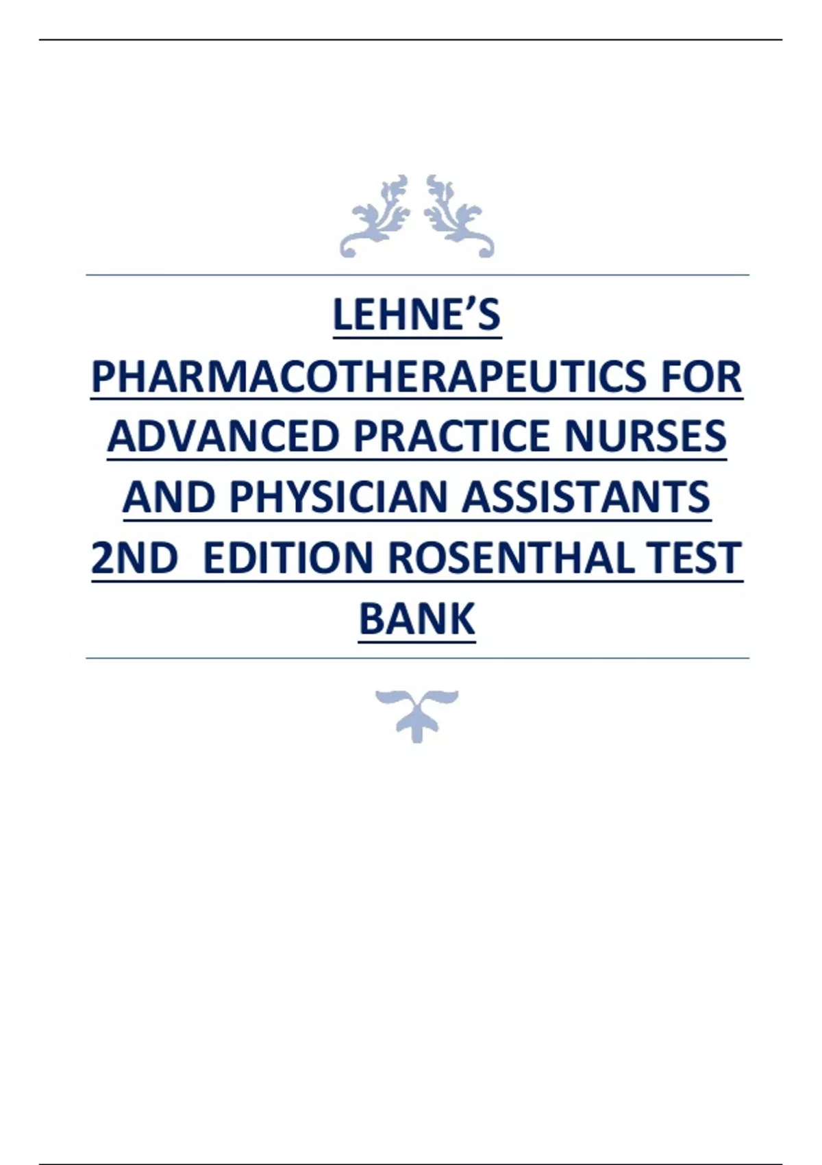 TEST BANK FOR LEHNE’S PHARMACOTHERAPEUTICS FOR ADVANCED PRACTICE NURSES AND PHYSICIAN ASSISTANTS 2ND EDITION ROSENTHAL