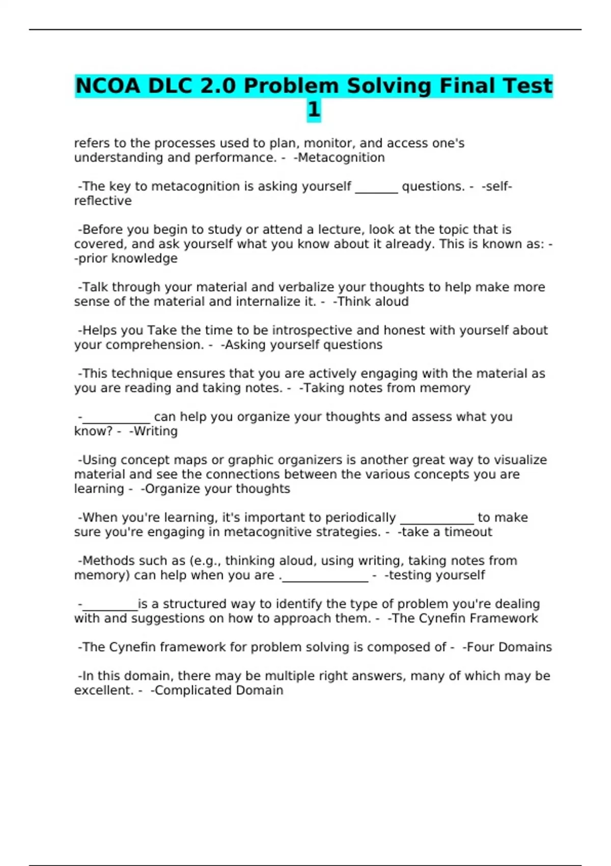 NCOA DLC 2.0 Problem Solving Final Test 1
