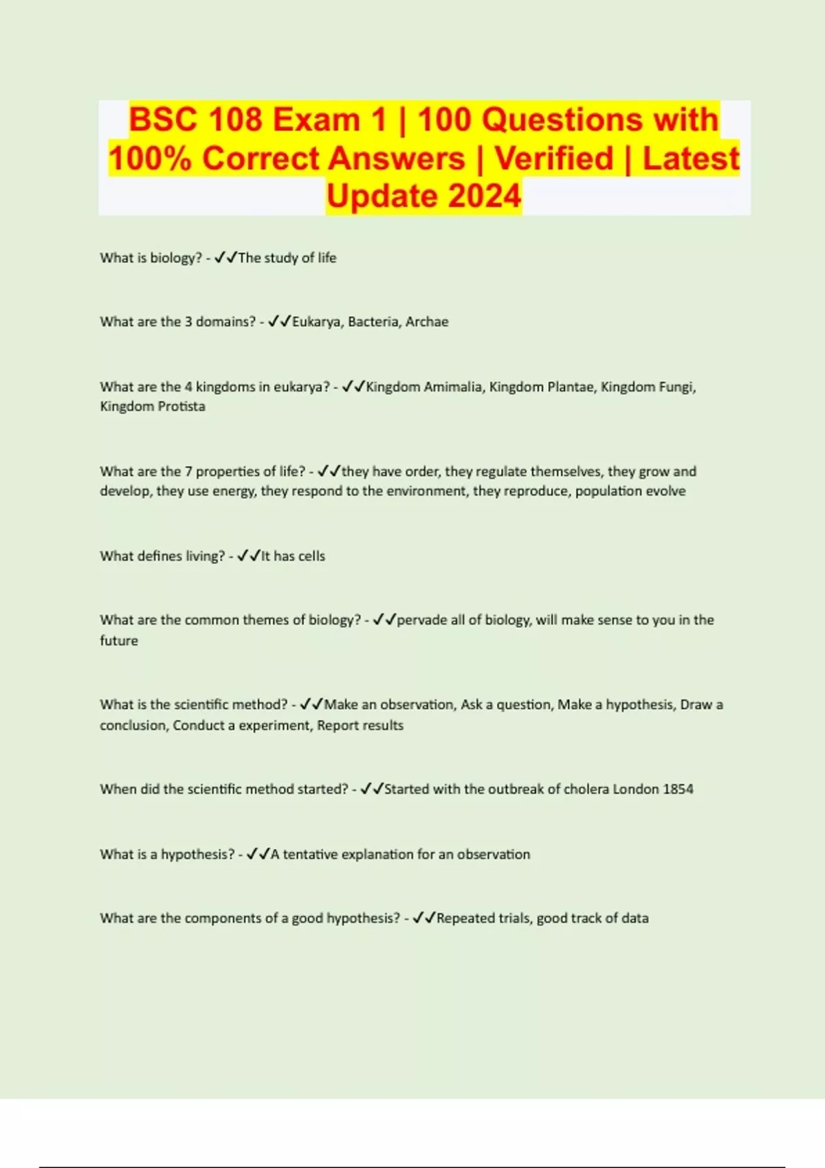 BSC 108 Exam 1 | 100 Questions with 100% Correct Answers | Verified | Latest Update 2024