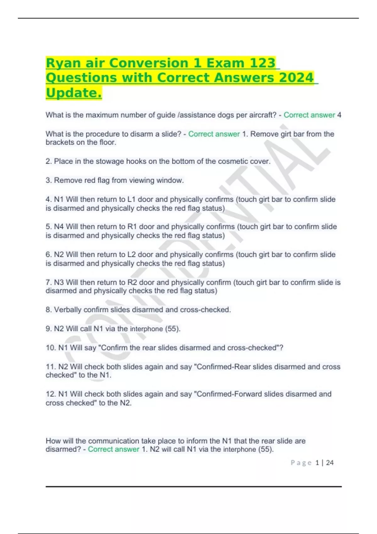 Ryan air Conversion 1 Exam Questions with Correct Answers 2024 Update.