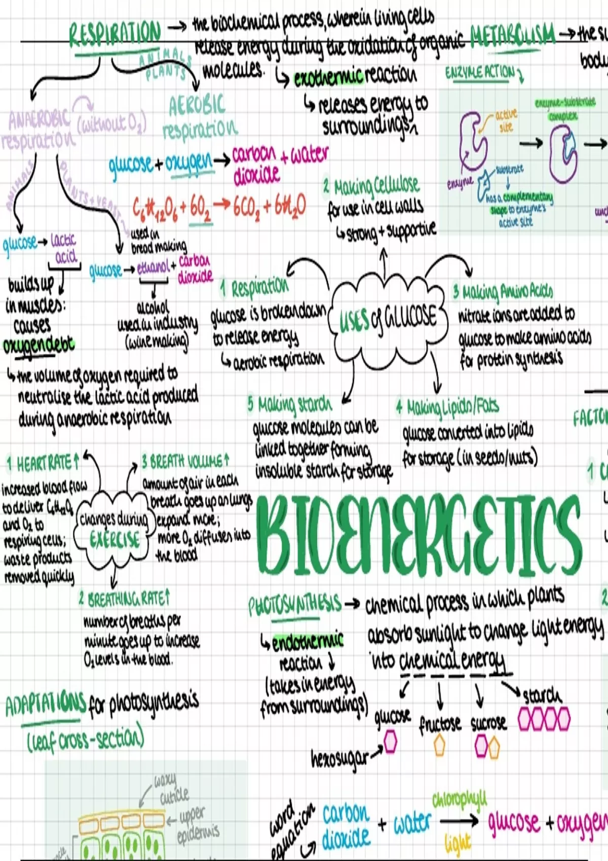 AQA GCSE Biology Module 4 Bioenergetics - summative mind-map This document serves as a multipurpose tool to aid your GCSE revision, made by a Grade 9 student. It contains elaborate details of the module, including key learning points from the AQA specification and a profile of all RPAs from this module. Through vibrant diagrams, equation explosions and condensed yet detailed notes, you can learn and revise this content effectively using this single mind-map. Consider it an all-in-one revision resource!