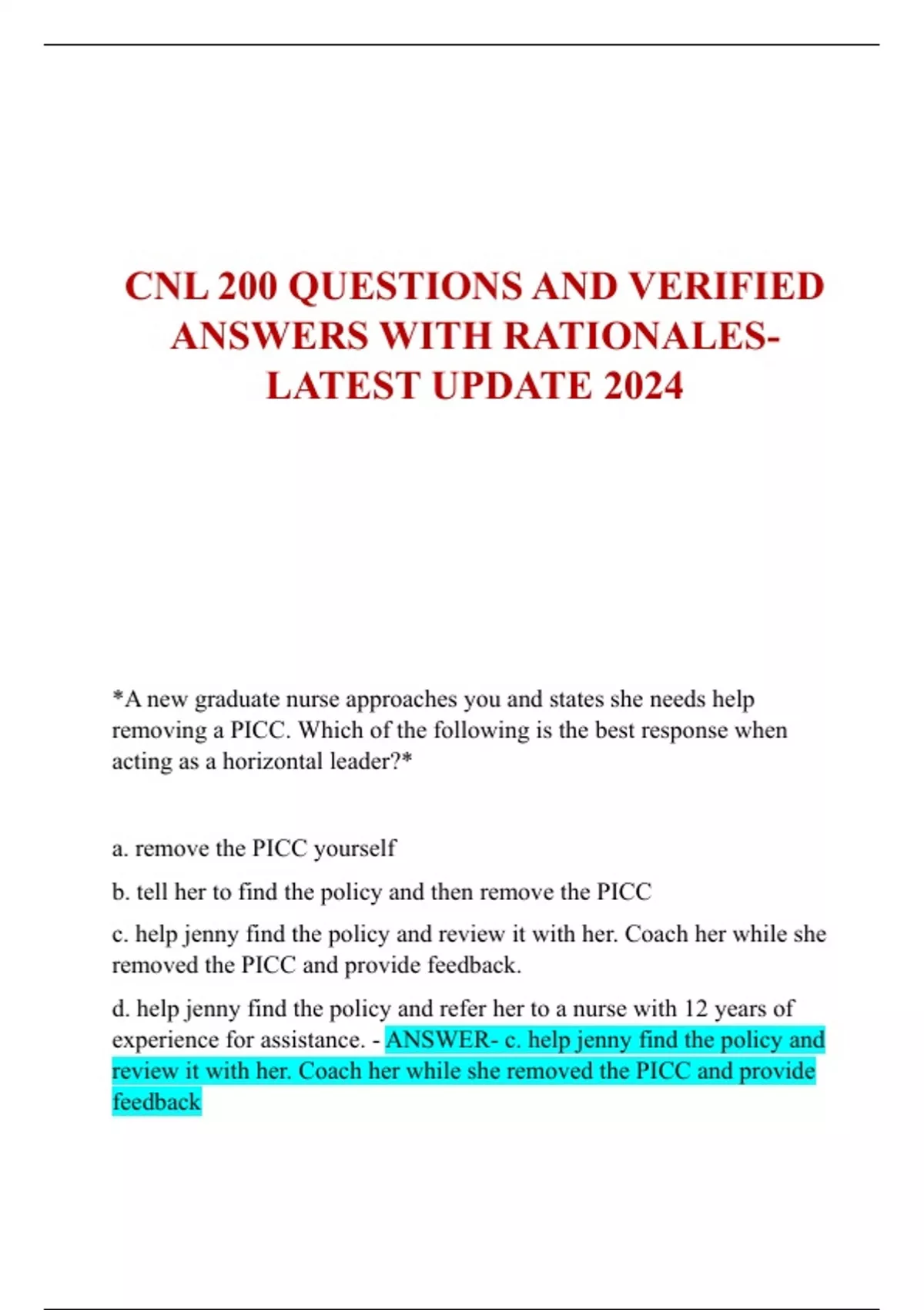 CNL 200 QUESTIONS AND VERIFIED ANSWERS WITH RATIONALESLATEST UPDATE 2024
