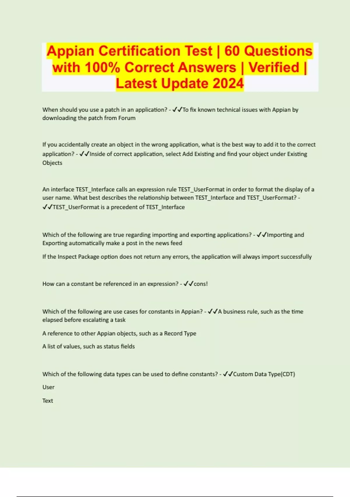 Appian Certification Test | 60 Questions with 100% Correct Answers | Verified | Latest Update 2024