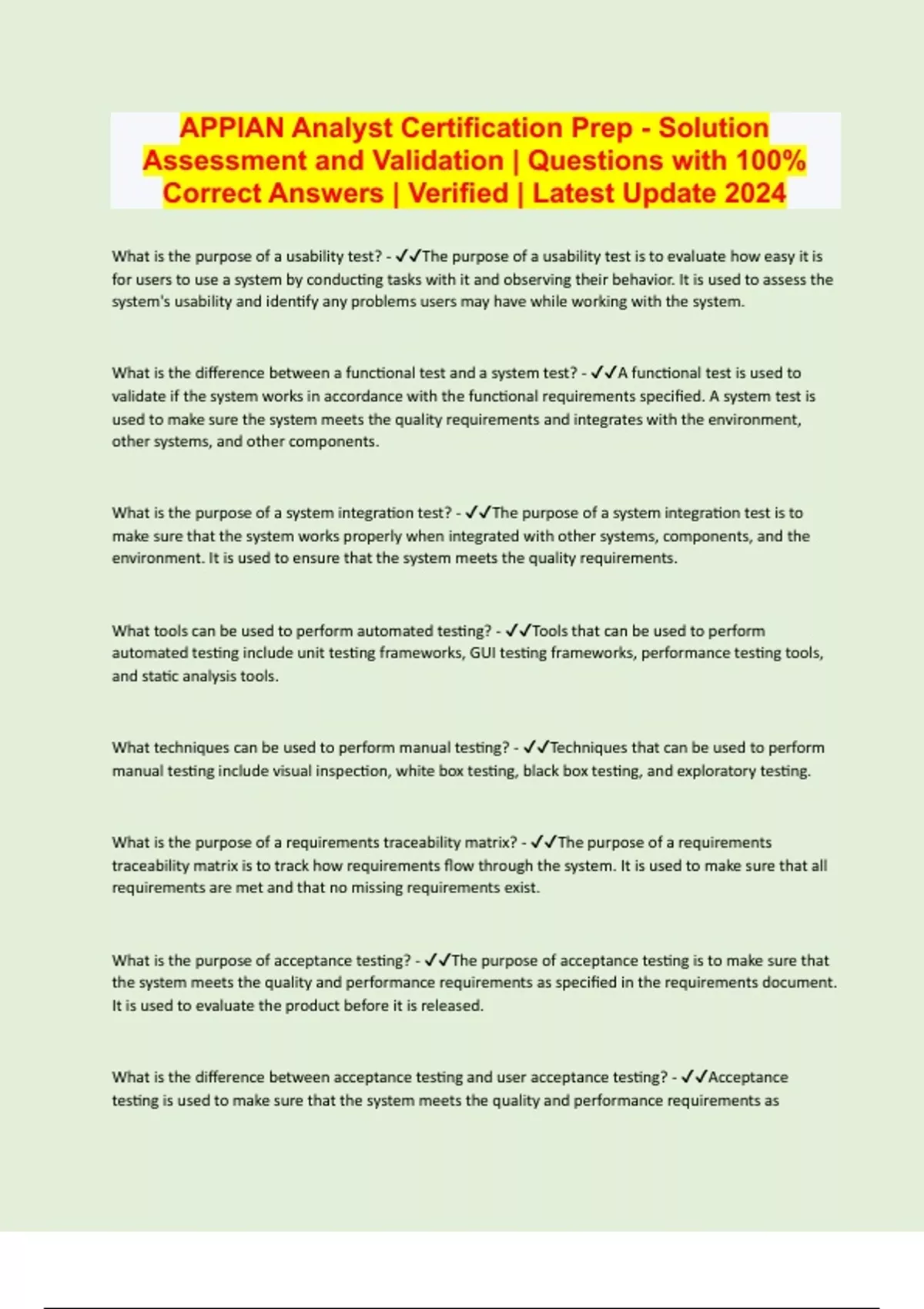 APPIAN Analyst Certification Prep - Solution Assessment and Validation | Questions with 100% Correct Answers | Verified | Latest Update 2024